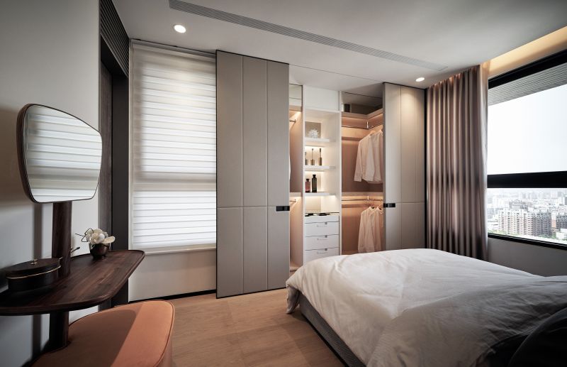 In order to configure a modern and sophisticated residential style in line with the personality of the young homeowner, therefore, adopt the reduced partition scheme to bring out the capacious, transparent, and flexible layout. Basically, exploit the mild earth tone, art decors, and soft furnishings of concise lines to create a stable circumstance. In addition, take the advantages of the recessed lights and stripe lighting to add the livable features, thereupon, bring about the serene yet dynamic homey atmosphere.