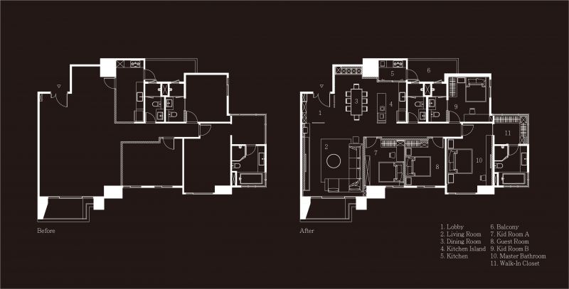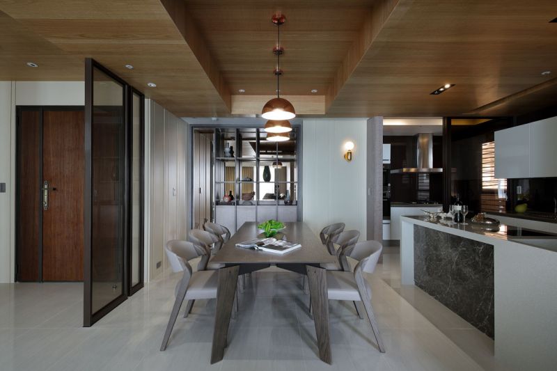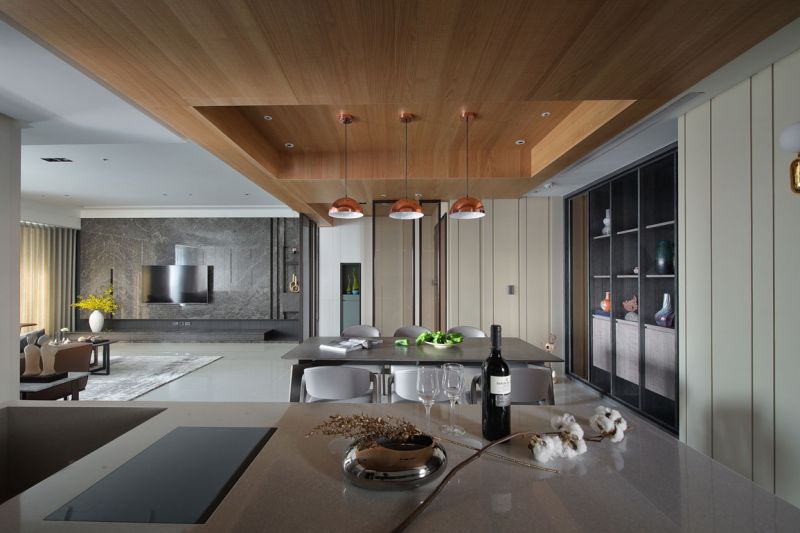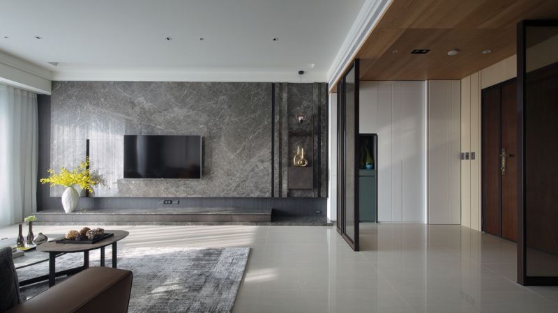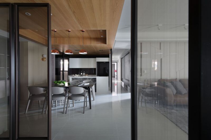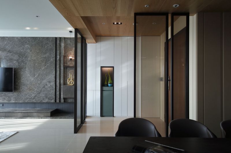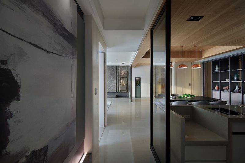 The corridor serves as the tie linking private and common spaces. The walls along the corridor serve as the focal point and synergize with the end view, which is the television accent wall.