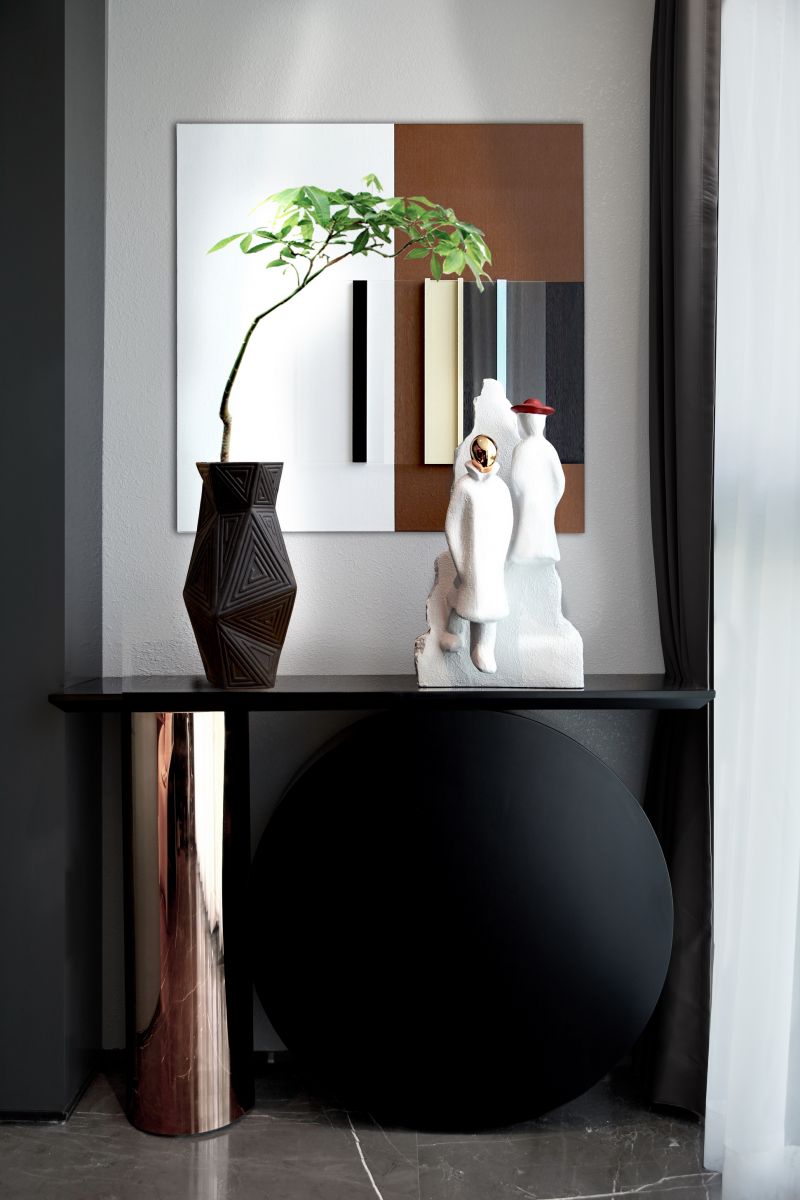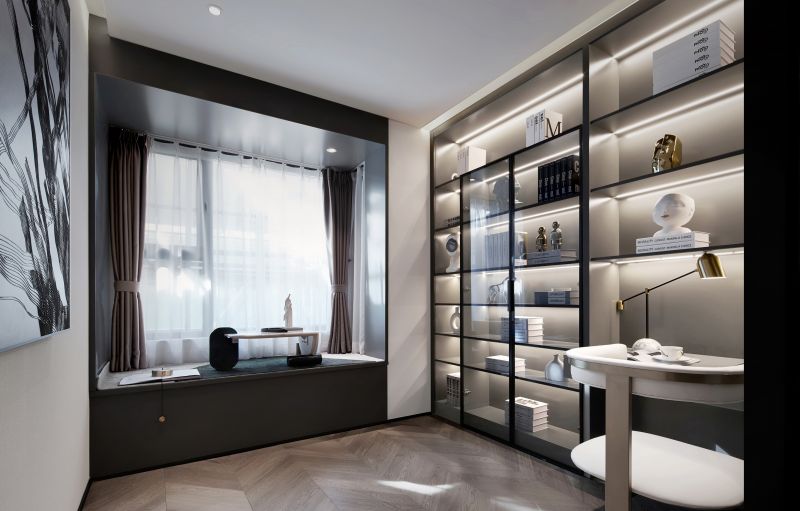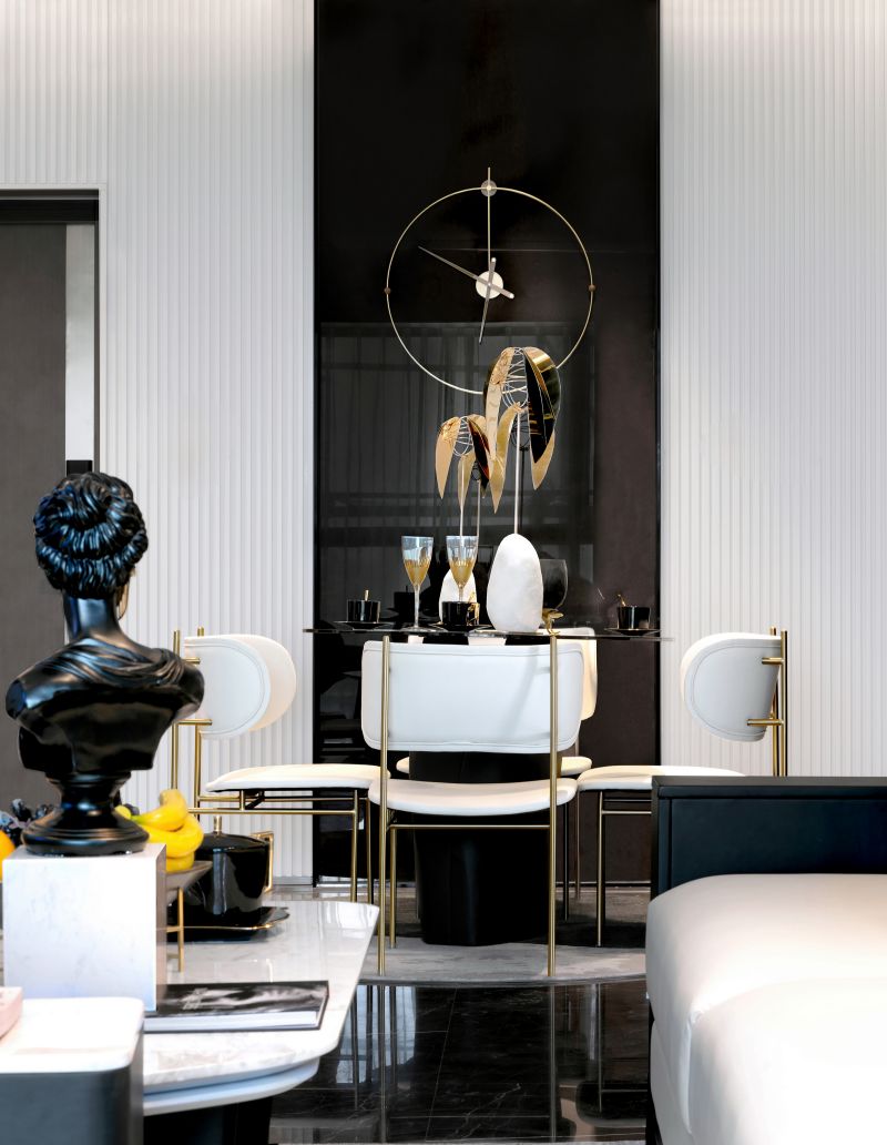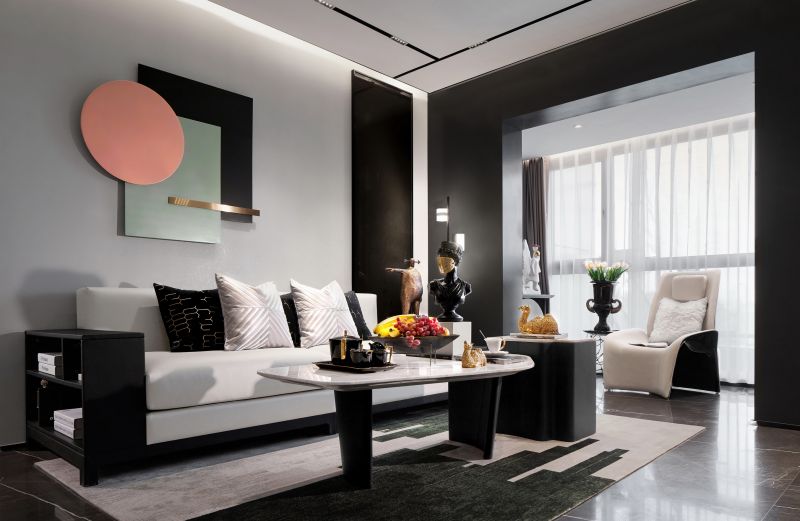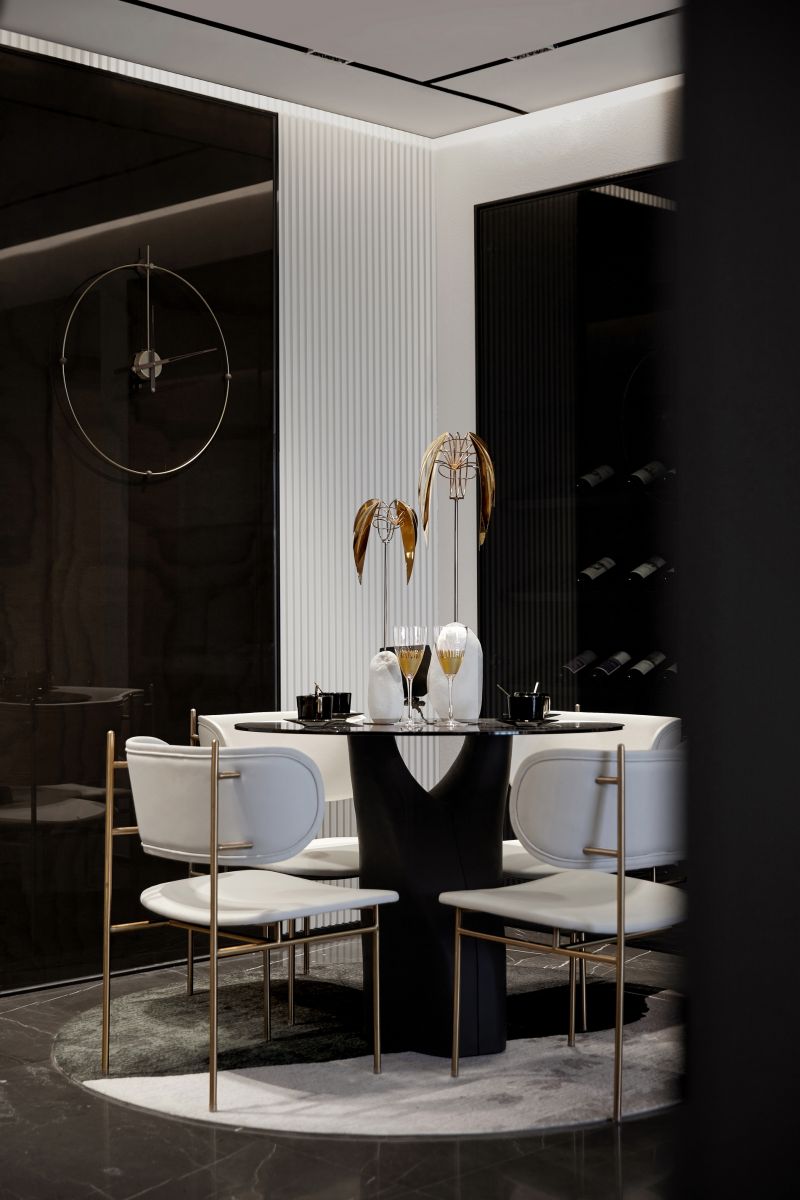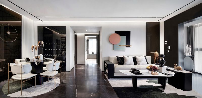 The design is based on black and white to create a refined and elegant space. The linear edge design, the use of marble, gray glass, mirror and other materials, the transformation of shapes and the alternation of materials mobilize the vision, and enrich the multi-layered changes of artistic forms in the space.