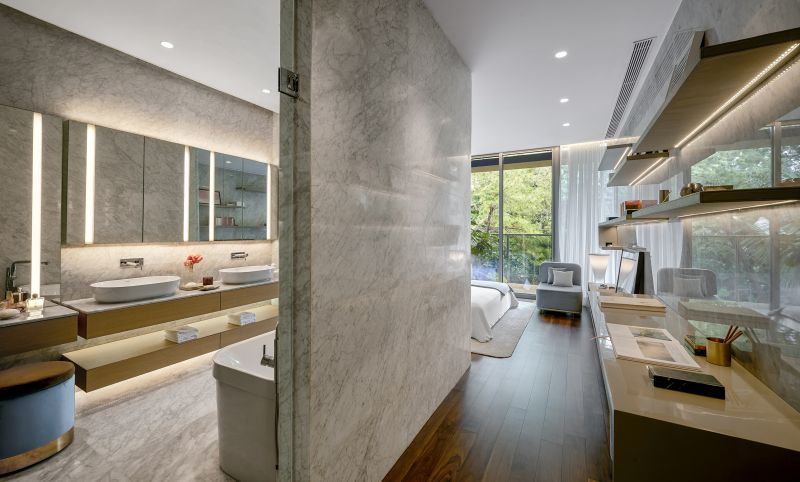 We were commissioned to design all the apartments, public spaces & amenities & 2 Show Flats in 2 towers of the SAVYAVASA residential development in Jakarta.The design intention was to create a home that lends itself to socializing and entertainment with secondary spaces that lends itself to a diverse demographic.The living room integrates dining with entertainment.The Master Bedroom is separated from a sculptural bathroom by a glass panel.The Teen Bedroom is colorful & feminine with a wall size mural by Indonesian accomplished artist,Ines Katamso.The Library subscribes to a masculine palette.