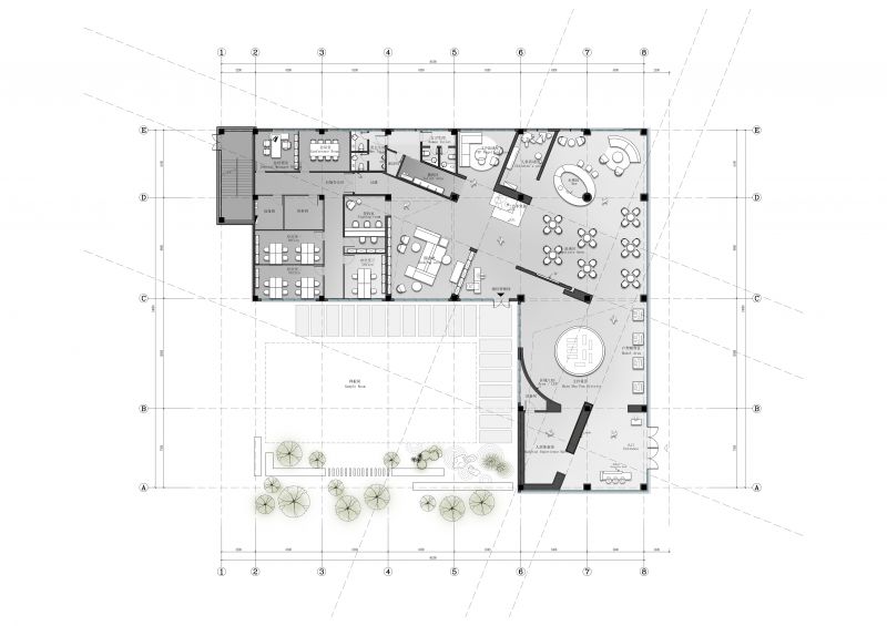 The spatial continuum is constructed by using film montage techniques, from the development to the tight distribution of the space in an orderly manner, and the overlapping of the ring layers derives a sculptural space atmosphere.
