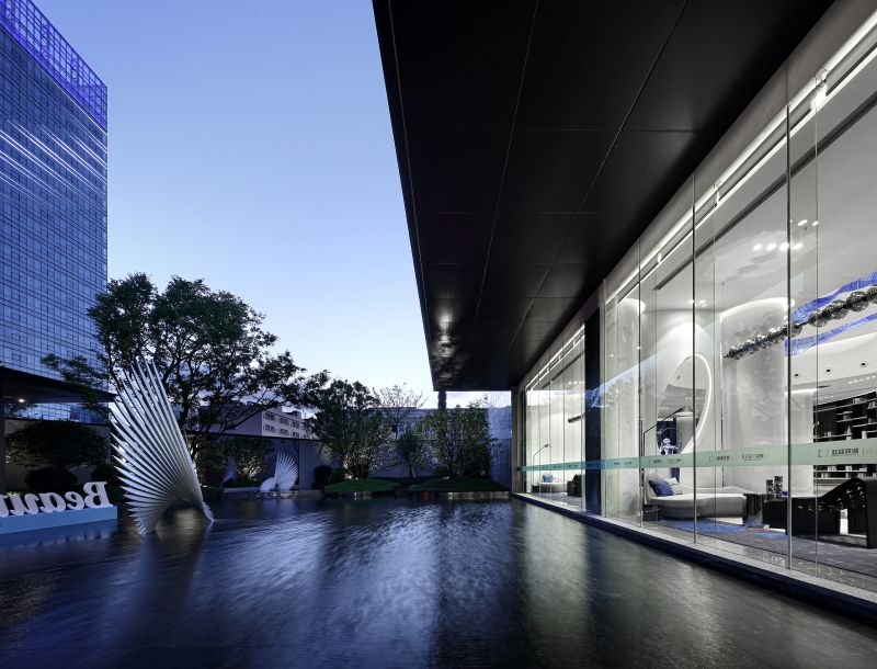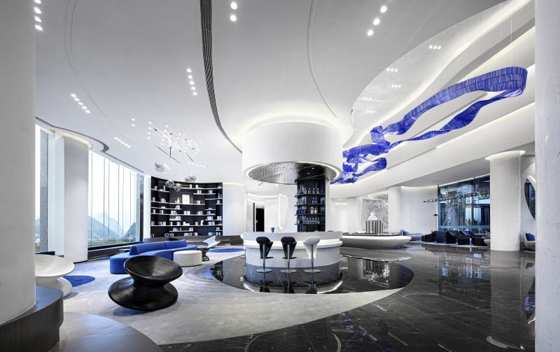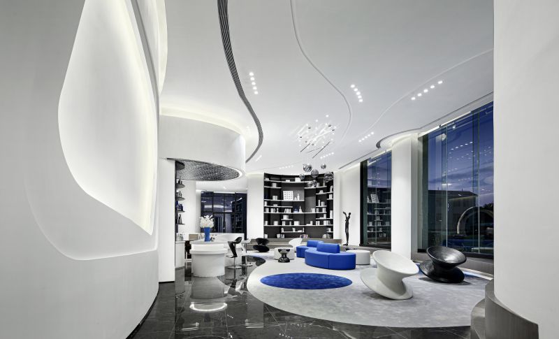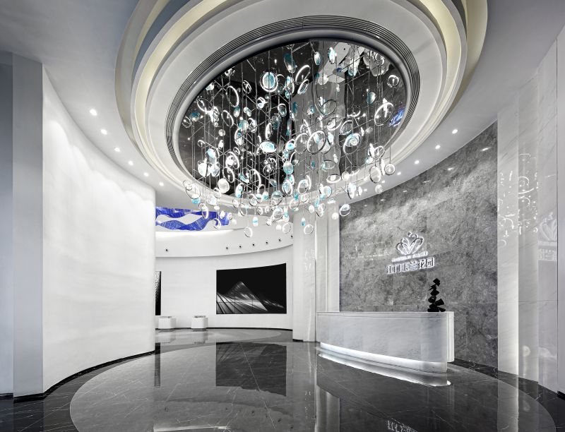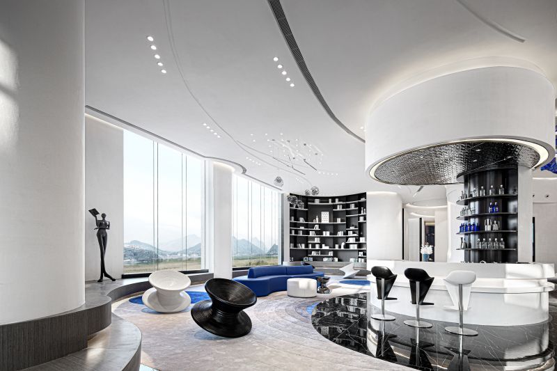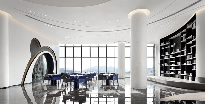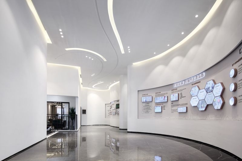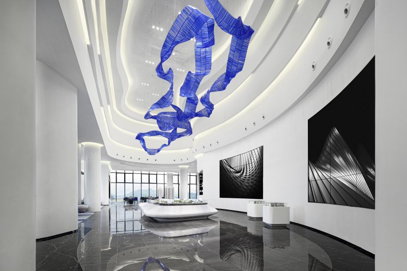 The design of sales center of Jiangmeng Yulan Garden real estate employs elegant and intriguing lines, wonderful three-dimensional space composition, minimalistic and bold colors in a surrealistic style, combining multiple styles together to create a stylish and modern space. It uses the regional concept of "river", and focuses on elegant lines and curves, which are reflected in each grand, fashionable space. Overlapped arcs are like romantic and beautiful waves of the ocean, reconstructing the space into a surreal visual feast, and stimulating the sensory perceptions of the audience.