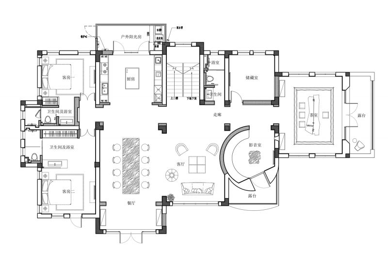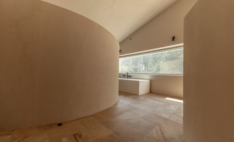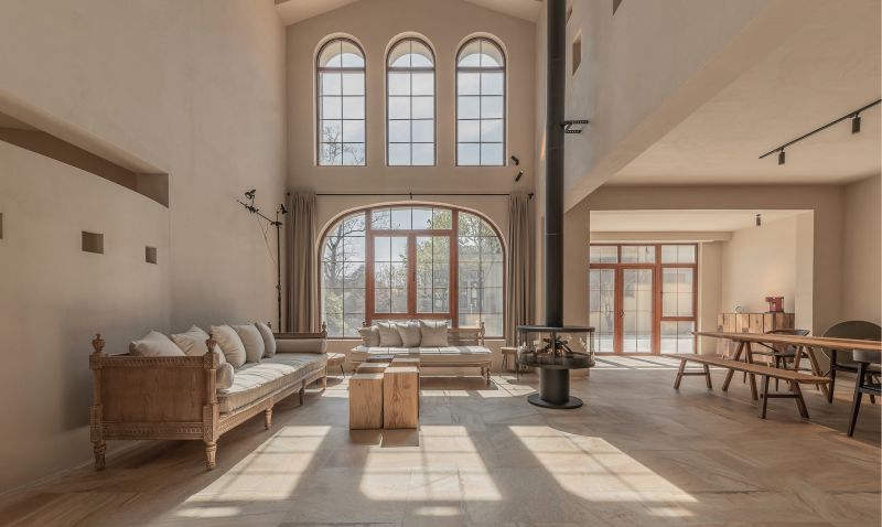 The mansion is a home as well as a gallery with aesthetic insights. The interior compositions are distinguished and separated by lines, which shows a rational touch of the designer. An integration of both straight and curve lines is utilized onto this mater piece in an organic and harmonious way, presenting an extraordinary temperament of diversity and harmony of the mansion.