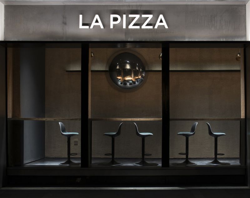 La Pizza restaurant is located in Xiamen, a coastal city in China. The designer skillfully uses the combination of rough Japanese rock materials and soft lighting to create an amazing time tour.
