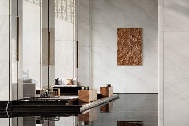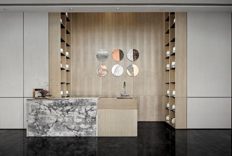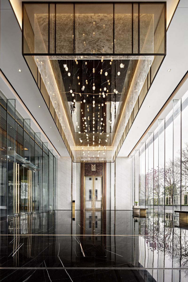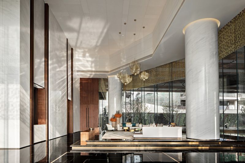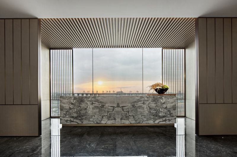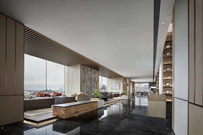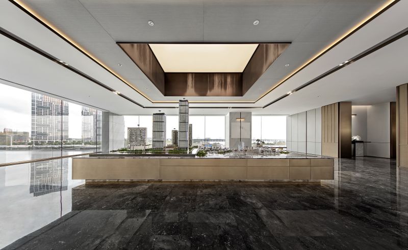 The design of the mansion creates an artistic sculpture building with a sense of physical cutting by strengthening the lines of power and the changeable cutting blocks. The façade of the podium adopts the water lines of the coastal living elements, which is very distinguishable in the identity of the façade. In the design of the sales center and lobby, Matrix combines the Horoy principle of "superior life practitioner", and also integrates its image of the pioneer in Qianhai, Shenzhen. The design continues the innovation and development of China Horoy with an elegant attitude.