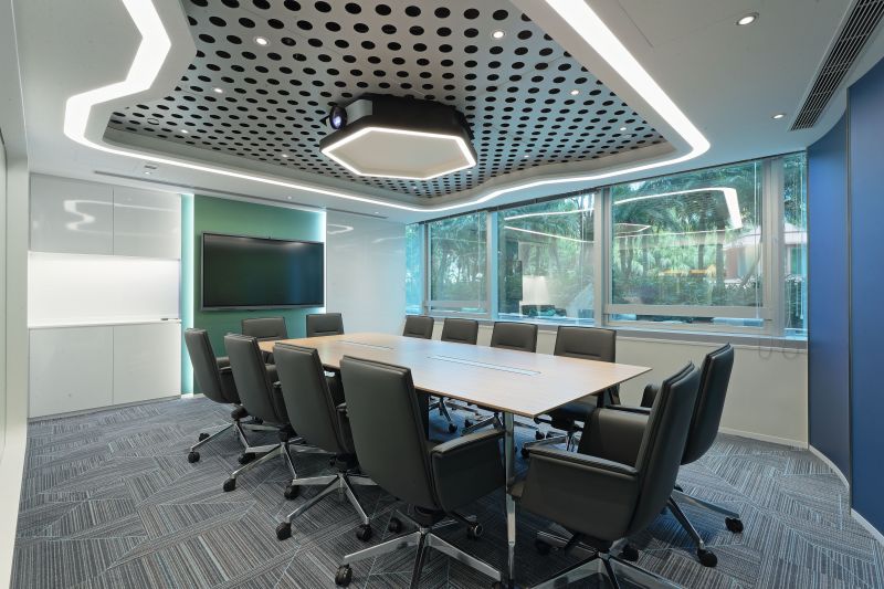 Designer uses the spaceship concept which combined 3D projection technology, switchable glass and reservation system with changeable form and streamline design with cold light to create a sense of future for the office.