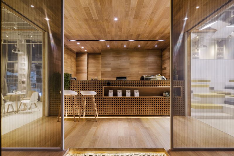 Seminar is an integrated experimental space including a lecture hall, theater, exhibition space, creative market, and dining area. Heilong Interior Design was trying to create a customized and multi-functional space within limited square footage. To break the existing space boundaries, we used the moving hidden doors to alter the space's identities and functions. In addition, an open and asymmetrical auditorium was built based on the ceiling heights, reflecting the casualness of people seating on the hills.