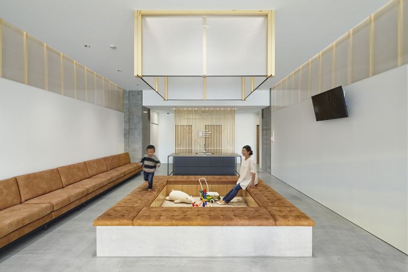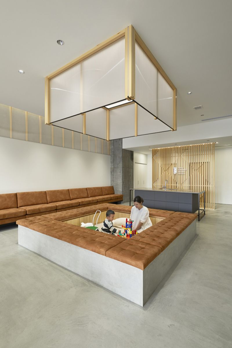 The most important element of this project was that people coming to the hospital would be relaxed. As a feature of space, In addition to the nursing room, a counter like island kitchen is set up so that you can make milk for baby in the waiting room. The kids area, which is at the center of the space, is a symbol of space and they can watch children from anywhere.