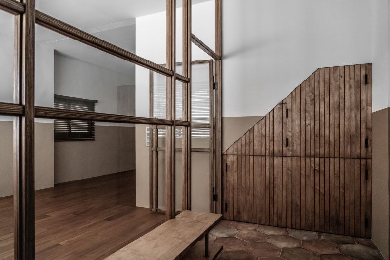 The three floors were arranged vertically in a sequence, and the space was divided into three levels as a whole. Through the flow of the body, the formation of the colors, and the transmission of will and emotions, the concept of thinking was spread in the space, which was beyond the supply of life.The space in this case was the extension of the body and soul of the owner of the house, taking advantage of the experiences and participation he had experienced in his life. Perceiving the state of spatial existence makes space, time, causality and human possibility the subject.