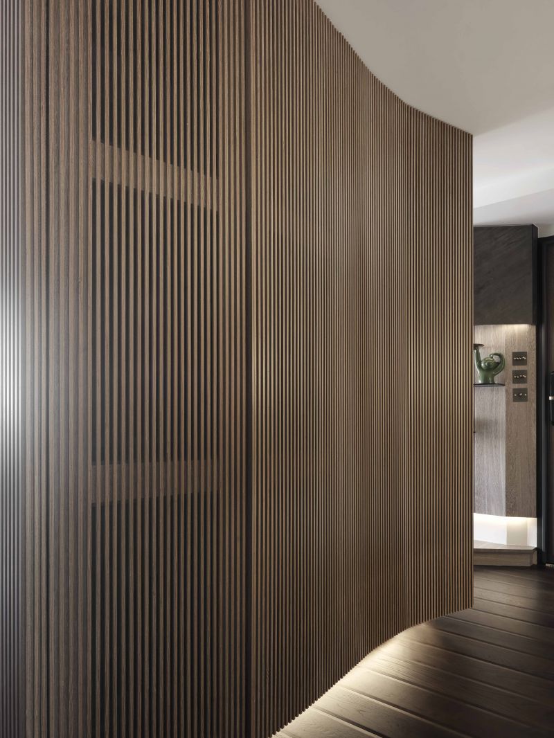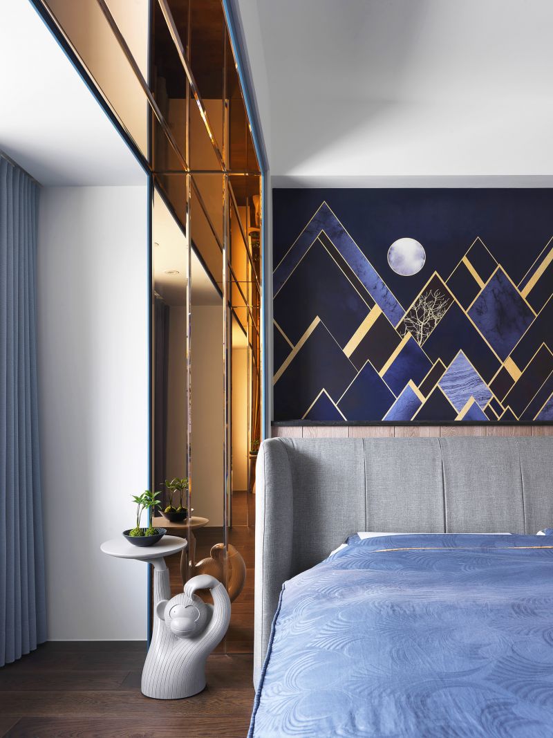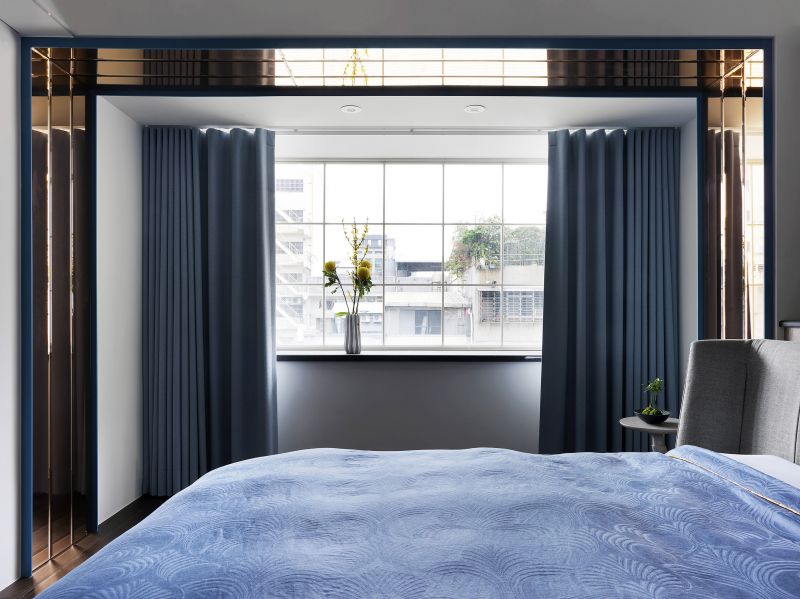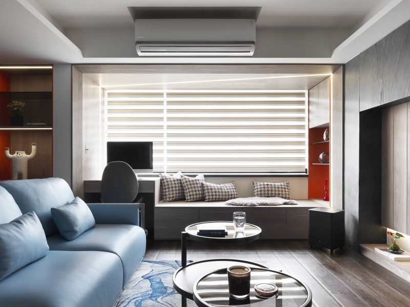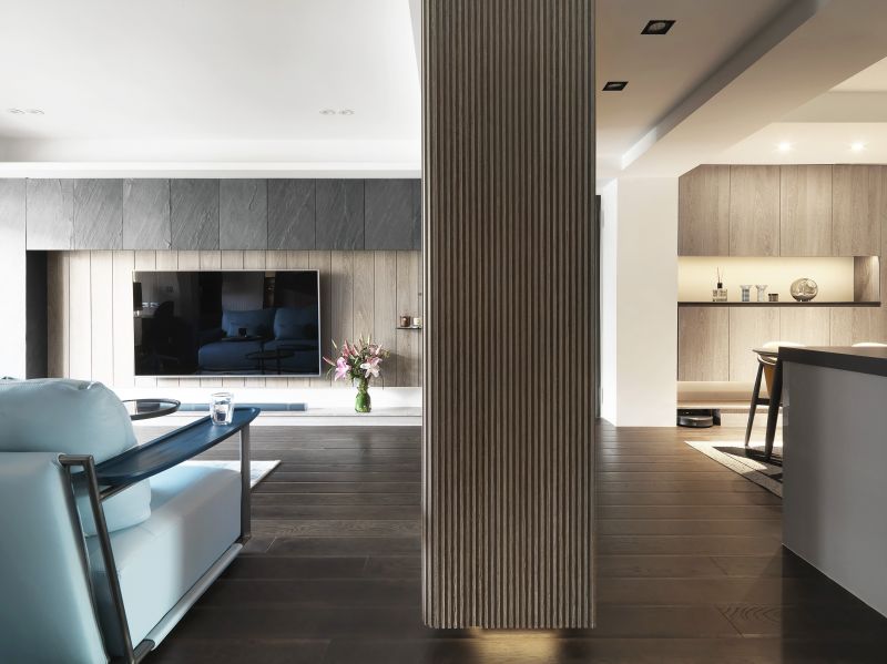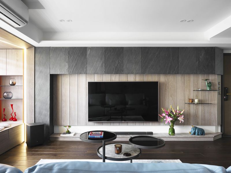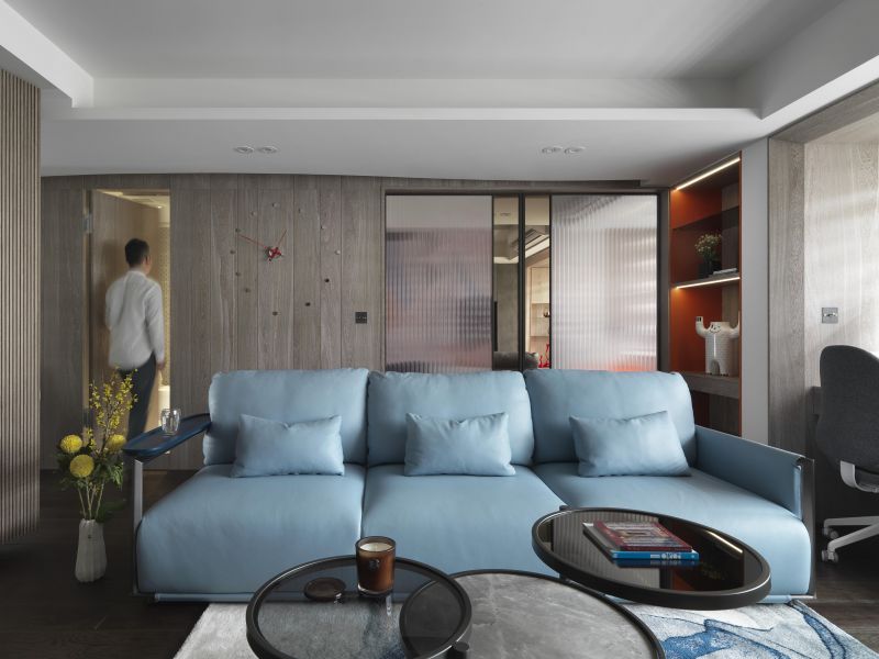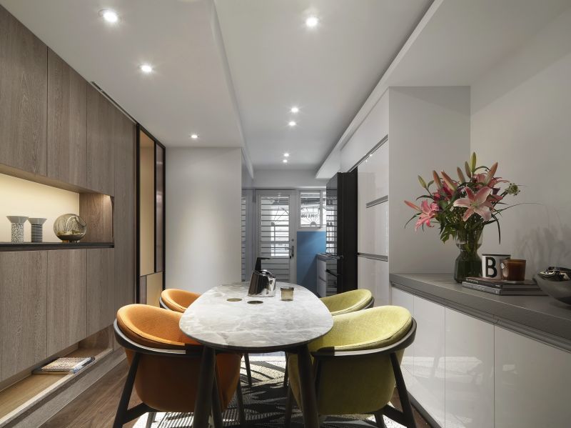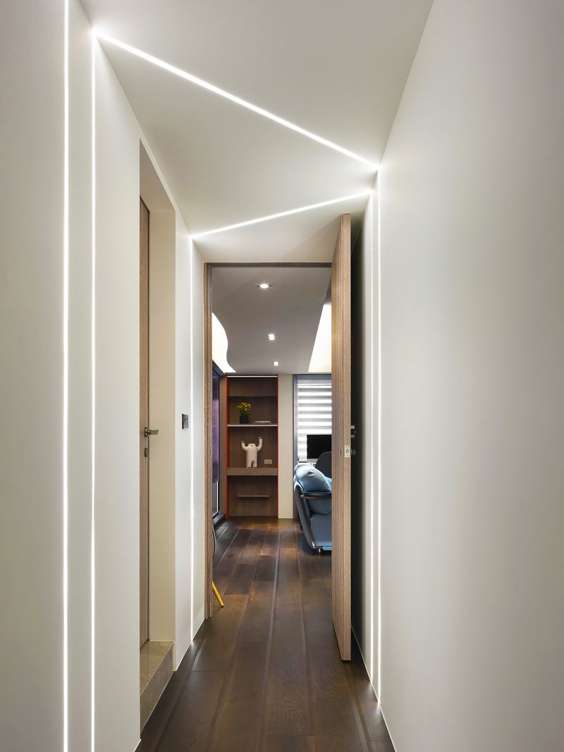 Improving the problem of the window facing against the door, the designer has added an S-shaped cabinet between the living room and the dining room so as to distinguish the function of different spaces, in the meantime, by using the loop pattern arrangement, the client can feel the smooth flow when returning home without disturbing no matter he is heading to the living room, dining area or the main bedroom. Additionally, the designer has established a sense of technology on the corridor to the bedroom by delicate thinking mode with the dimmer which provides diverse ambiance.