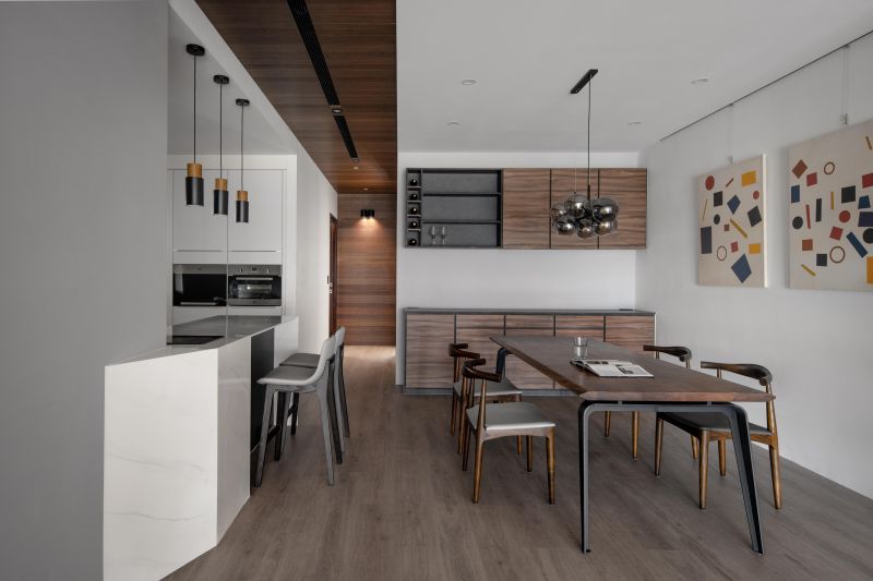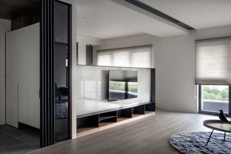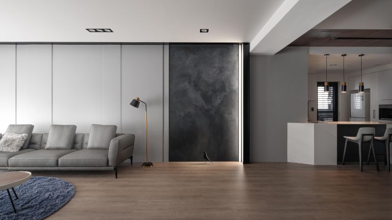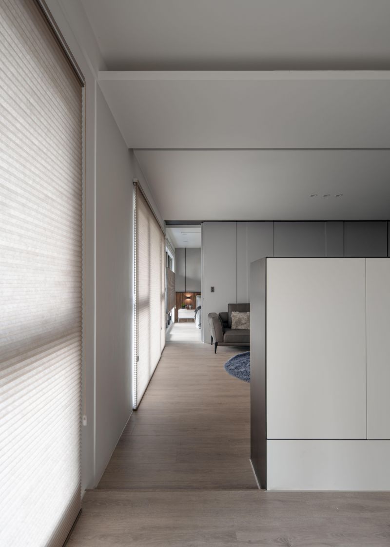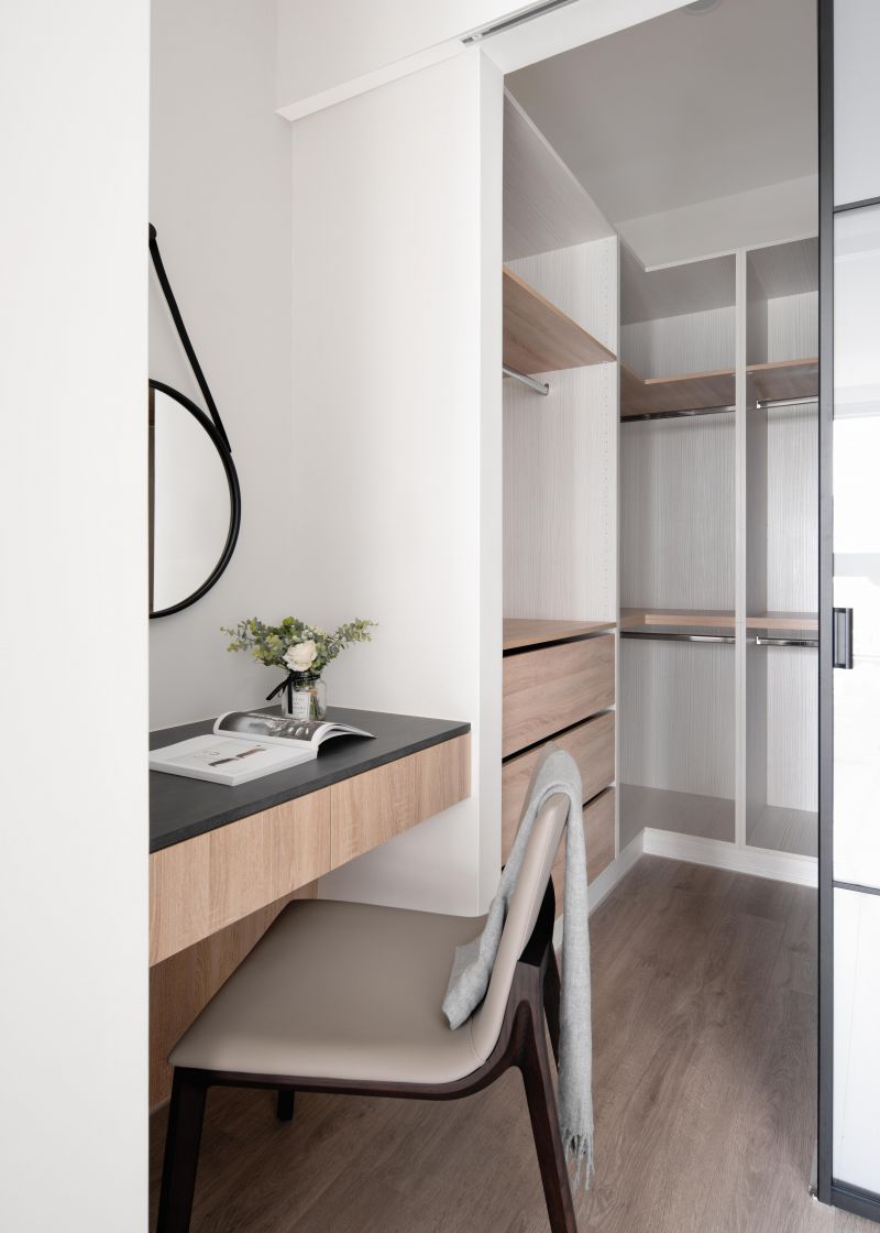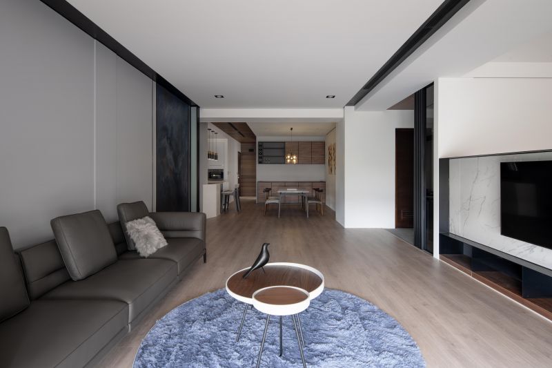 Through minimalist design technique with the spirit of universal design, black, beige and grey-scale color scheme without superfluous decoration was intended to create a relaxing modern residence for the client. With the large-area window for maximum natural lighting and the vista from the green park in front of the building, the public domain is of open design allowing natural lighting and ventilation to embellish such flowing space.