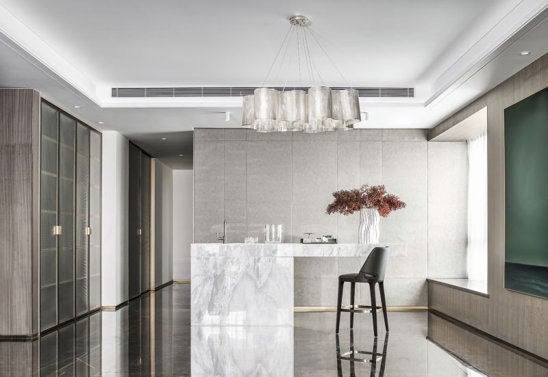 This design is an apartment for a young couple.The whole space is decorated with wood and marble.The whole design reveals a kind of concise and easy, harmonious and natural color and cleanliness.It is elaborately carved on the space texture, showing the taste and personality, conveying a kind of life attitude full of "elite sense".