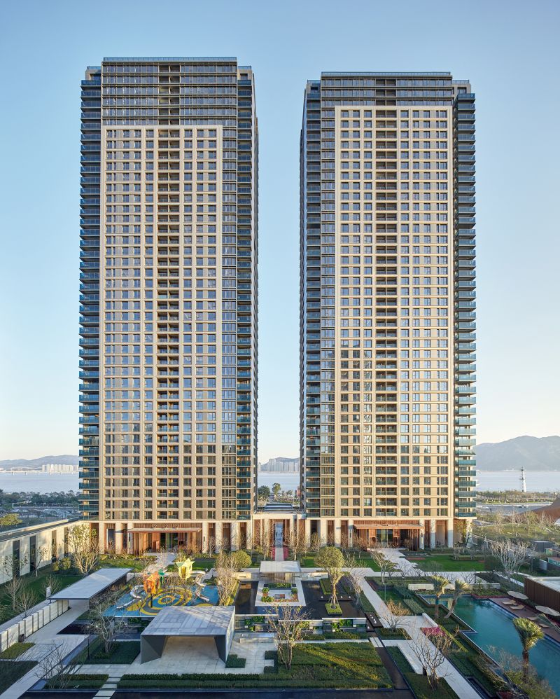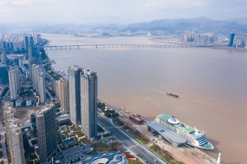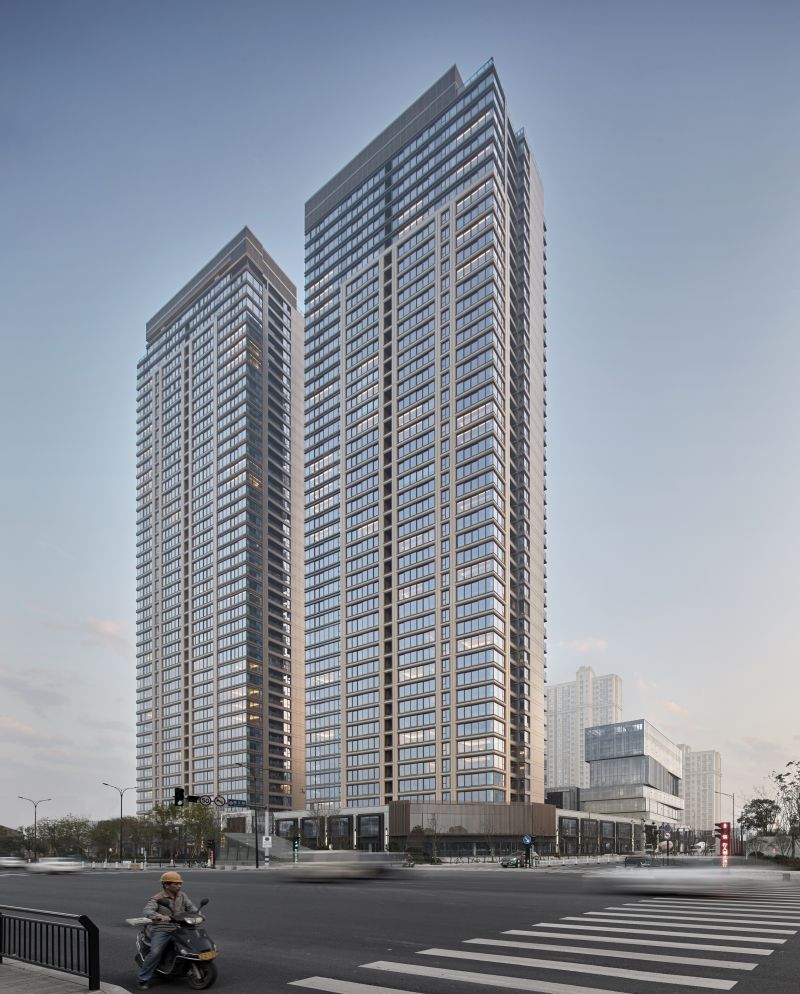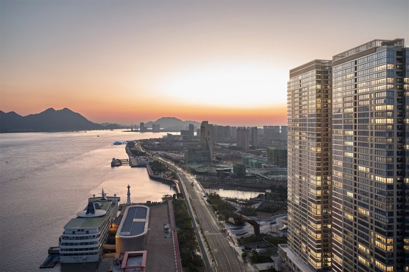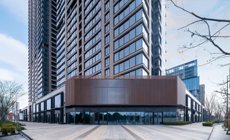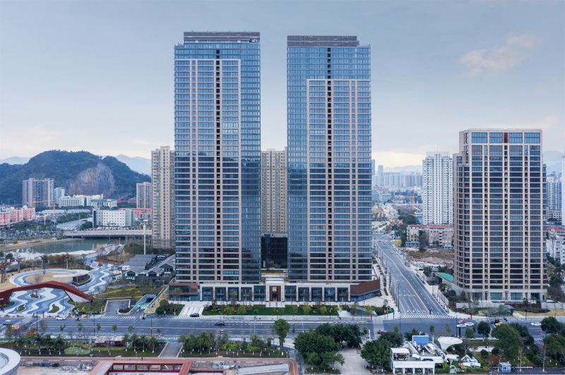 The overall planning of the Wenzhou Vanke Times Center started from the site, reshaping the river boundary, the horizontal landscape and the relationship between urban courtyard and the high-rise buildings, creating the natural situation of "living in front of the mountain and beside the river, which is temporarily forgotten in the secular world". The floor area of this super high-rise complex is 96,068 sqm, including office, commercial, residential community, composite community and other functions.