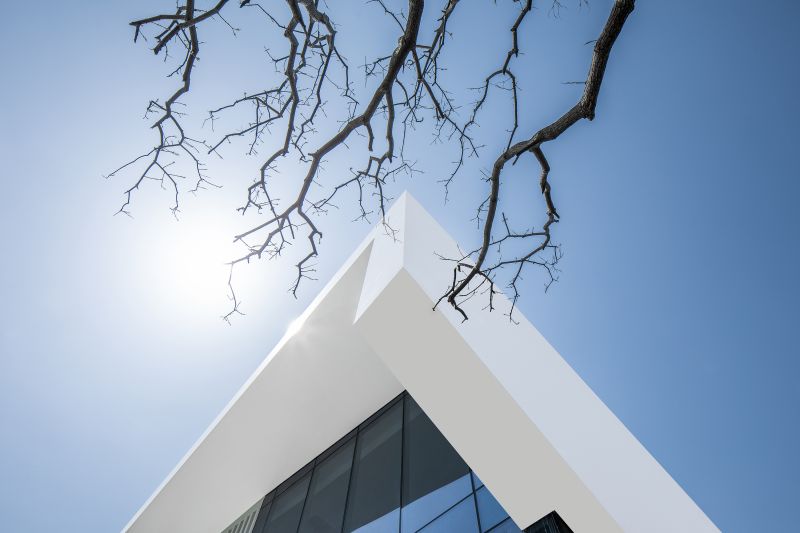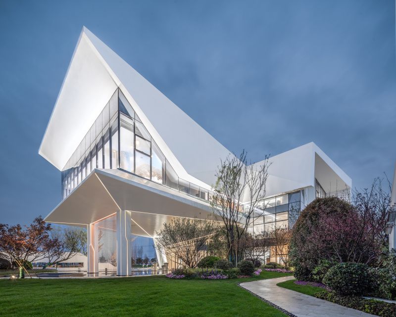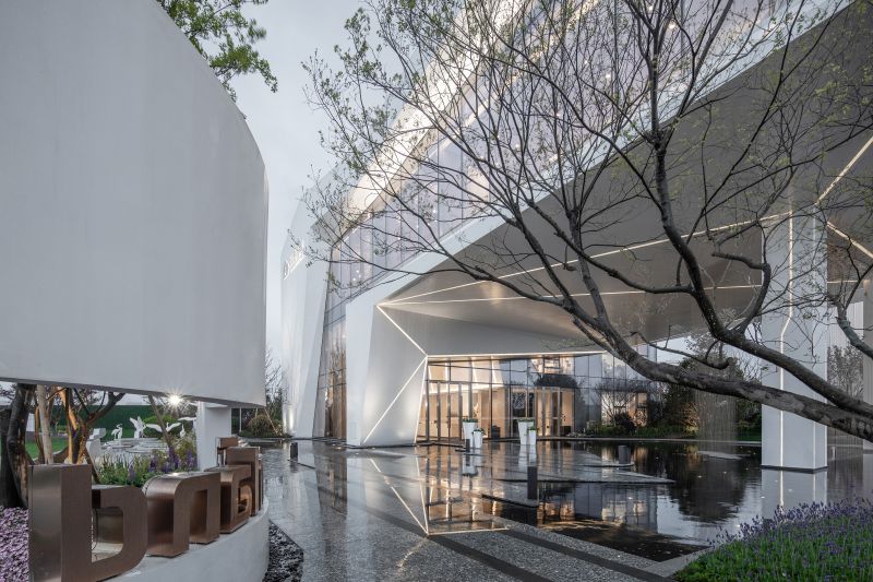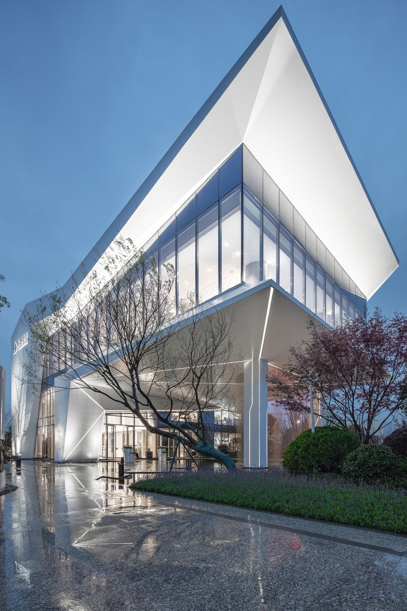 The inspiration of architectural modeling comes from the form of waterfowl flying, from which intersecting straight lines and sharp triangles are extracted as modeling elements. After abstraction, deconstruction and reorganization, they are implanted into the building, forming a dynamic image and a visual impact force.