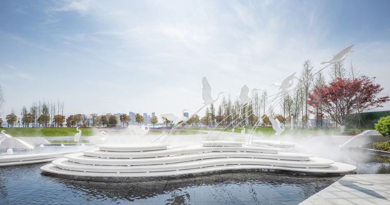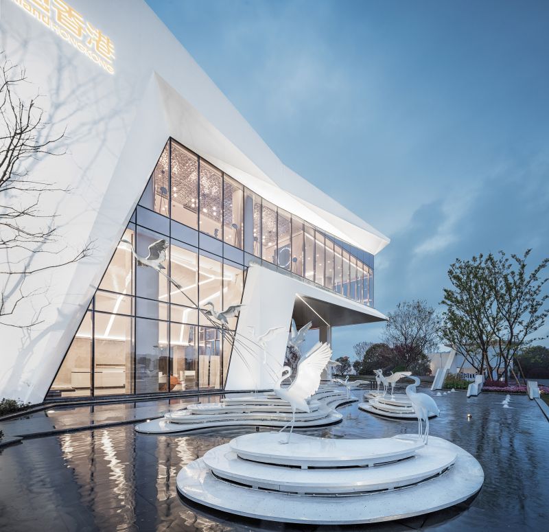 At the same time, the white building decoration mimics the white egret, which is natural and pure. It blends with the creativity of the building itself, achieving the beauty of nature, movement and power.