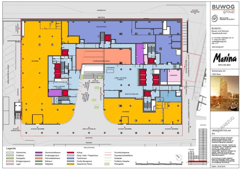 The project with around 500 high-quality residential units, with its location directly on the Danube, has excellent transport links and will also offer a number of extras for residents and the general public. So it is considered to implement a sustainable mobility concept as well as exclusive services such as concierge service and home cinema. The MARINA Deck also opens up the right bank of the Danube, which on the one hand opens up generous public open spaces and also makes an important contribution to urban development.
