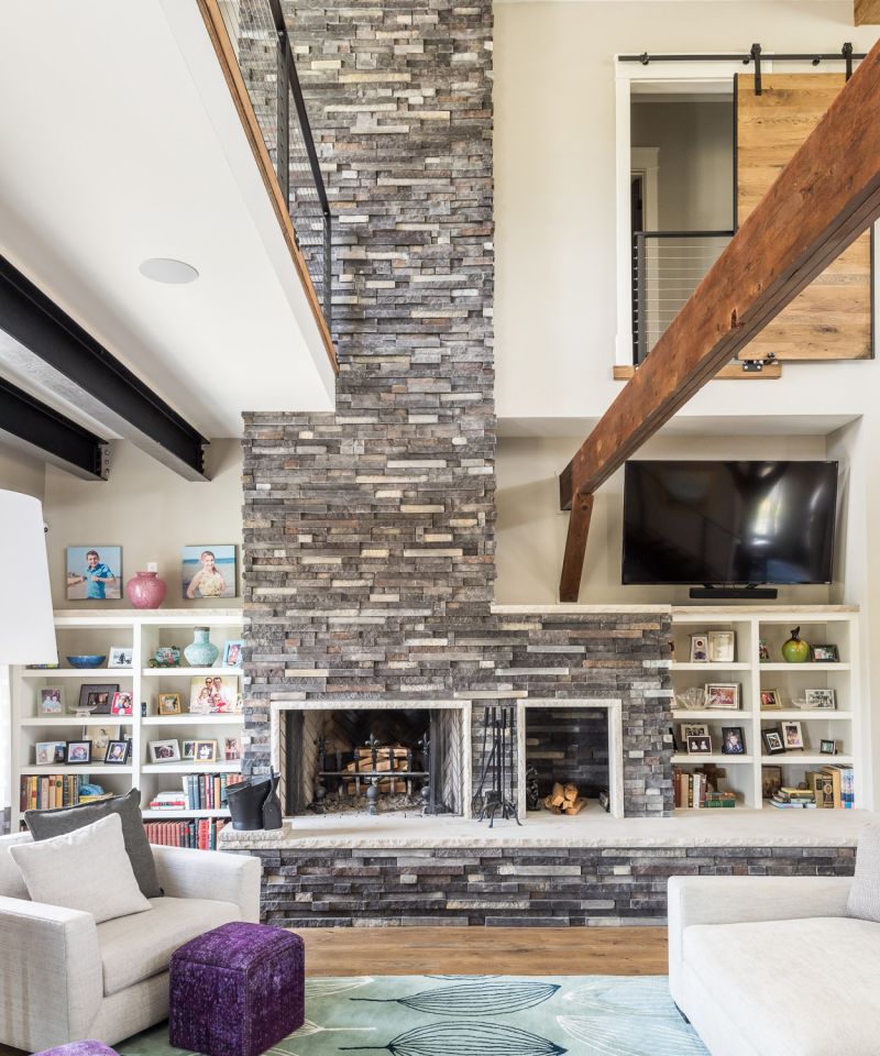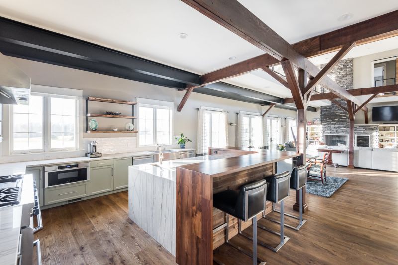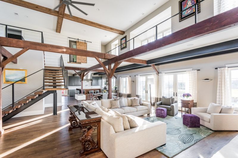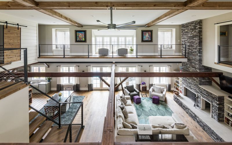 The Barn at Walnut Hill is the adaptive re-use of a historic barn by 2 architects who saved it from demolition & turned it into their family home.While maintaining the Dutch Gambrel style on the exterior, on the interior their goal was to have a warm and inviting home that preserved the striking structural components and highlight the impressive volume of the barn’s interior. Sustainability was a primary goal, achieved with solar panels w/ storage batteries, mineral wool insulation, motorized blinds to control solar gain and nearly all systems in the home are automated for energy efficiency