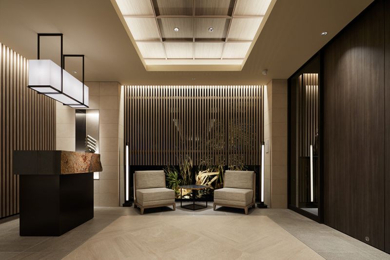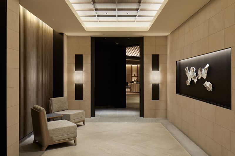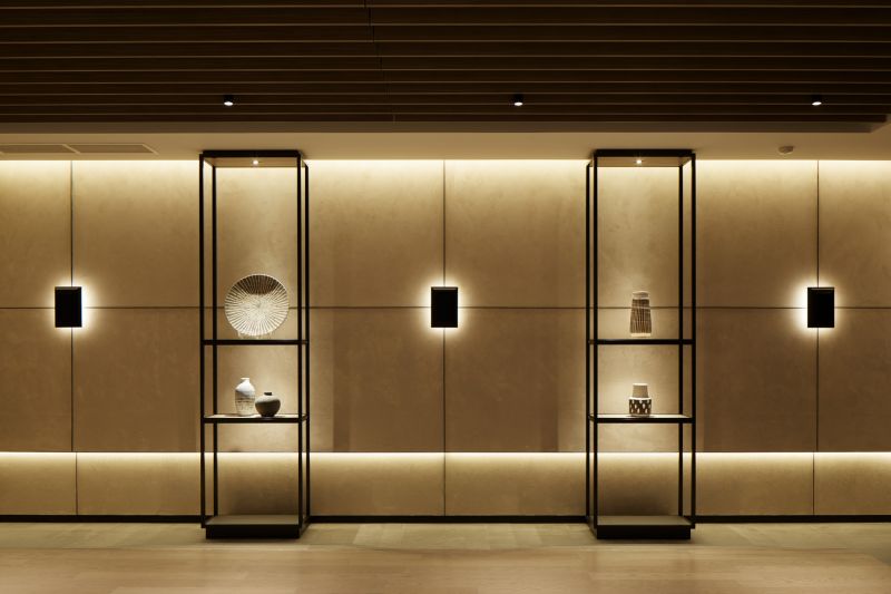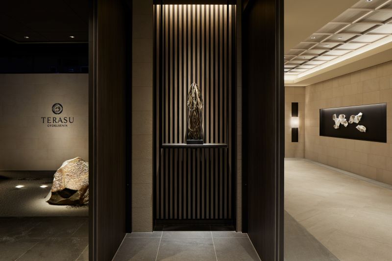 The concept is "ESSENCE OF LIGHT", and the basin and natural stones are arranged so that you can feel the quiet appearance, sunlight, and gentle breeze by the sequence of light. The art and materials placed in various places are also created with the image of the concept.