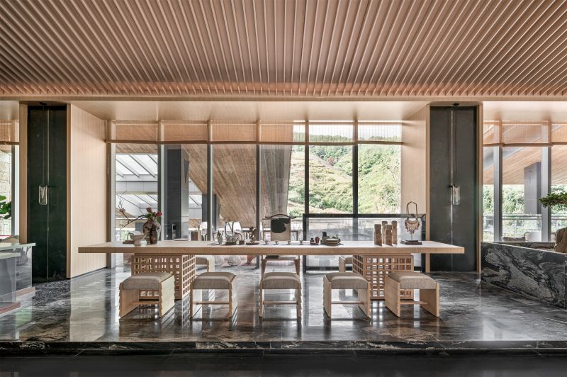 Cooperated with LUX Hotel Group, the project is a light luxury resort hotel themed with the ancient tea horse road and Pu'er tea culture. Modern design techniques are applied to materials with natural textures. Making full use of Pu'er's extremely comfortable temperature, air, sunshine, vegetation, and other natural conditions, the indoor and outdoor spaces are combined through design. Taking advantage of Pu'er tea's unique materials, textures, and colors, the space expresses the unique tea culture and connotation of Pu'er, featuring an integrated comfortable, and relaxing holiday atmosphere.