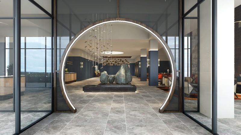 "syzygy" translated literally as the perfect alignment of the three celestial bodies and it inspires the design for a small boutique hotel located in the historical town of Ipoh, Perak. the strategy of the design is to harmonize elements from the past and present. translation of the concept involves careful selection of the materials and color composition throughout the space from common areas to the private spaces.