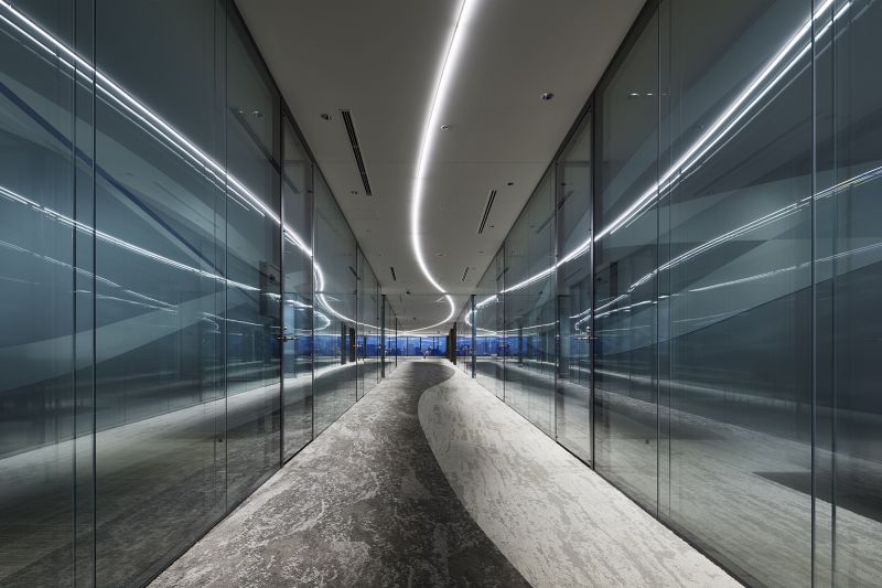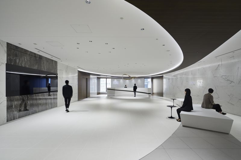 Inspired by the given environment, the relationship between interior space configuration and the generous nature of imperial palace. we came up with design concept “FLOWING”. Main corridor radiates from the reception, the floor pattern and lighting follows to create the flow towards the view outside to emphasize the richness and dynamism. Focal point within the Flow were Placed at where people gather and communicate. and Natural texture used on materials/artworks refers to the flow of the nature which add an extra accent to the space to convey the design keywords to visitors.
