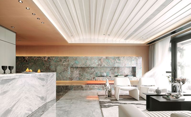Inspired by natural texture and continuous ranges, it creates a cultural atmosphere for the space. Each texture tells its own story about the time.