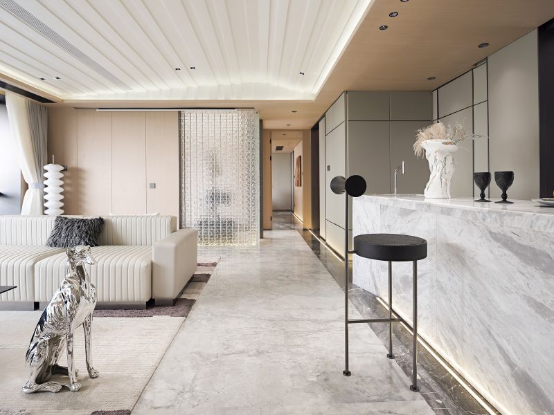 The entire space is separated by symbolic elements in both horizontal and vertical directions, so as to maintain maximum integration and continuity. Linear and uniquely shaped furniture and furnishings guide people's visual movement. The rich scene experience awakens people's perception and senses, feeling like unconsciously walking into the dreamland of Taoyuan.