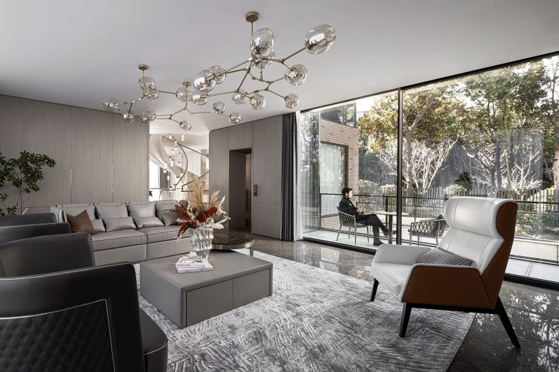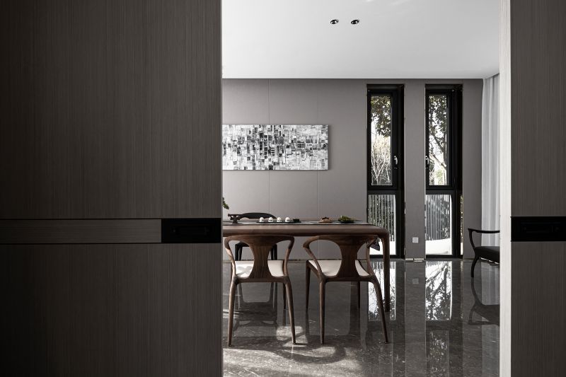 The designer dismantled the complicated and redundant walls in the original space, re-planned the space and its use functions, and made the space open, transparent, bright and atmospheric. Not only that, in order to let a lot of light into the interior, the windows on the first floor are all in the form of French windows, so that the householder can have a more comfortable, bright and open space experience. The wood color extends all the way to the living room, and the warm wood tone lays the keynote for the cordial and textural tone of the main space.