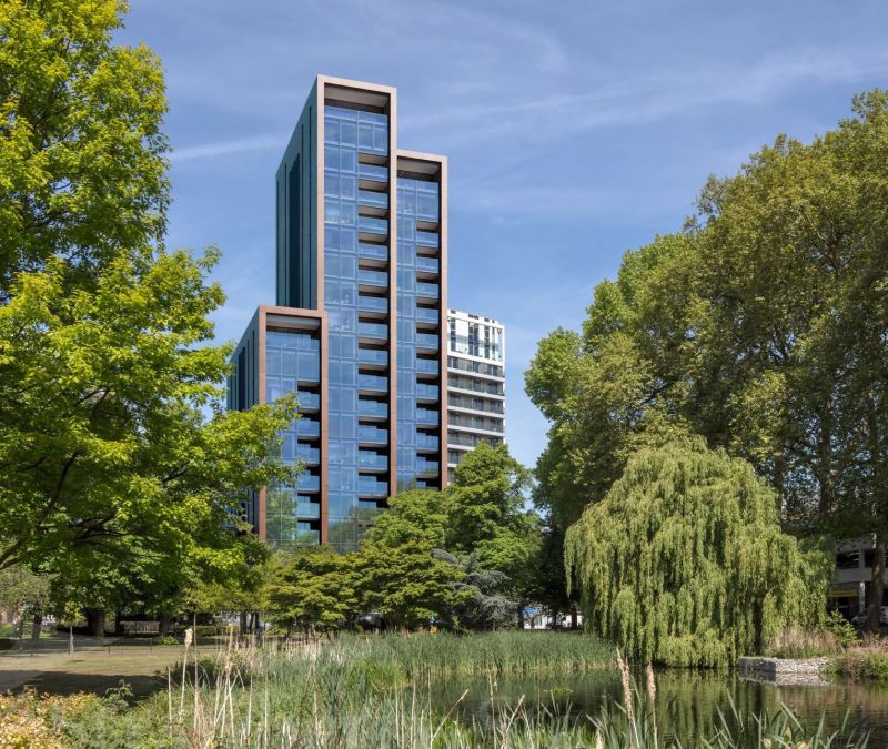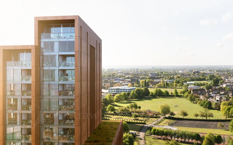 Bronze is located on Buckhold Road in Wandsworth, London. Structure comprises 3 residential towers – 11 storey, part 18 storey, & part 20 storey; 79 apartments, including studio (1), one-bed (27), two-bed (45), three-bed (1) and penthouses (5) are part of Bronze, which fits with the theme of the lighting/lamp industrial heritage of Wandsworth, but with a modern, more abstract appeal with its name reflecting the fantastic colour of the building’s cladding. The design is driven by a prevailing industrial language. Planning is by Rolfe Judd & Construction Design by ACG – Ayre Chamberlain Gaunt.