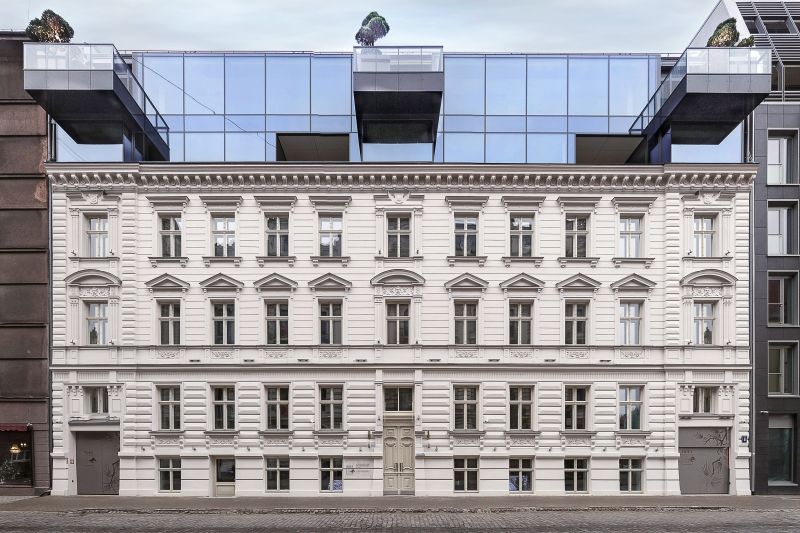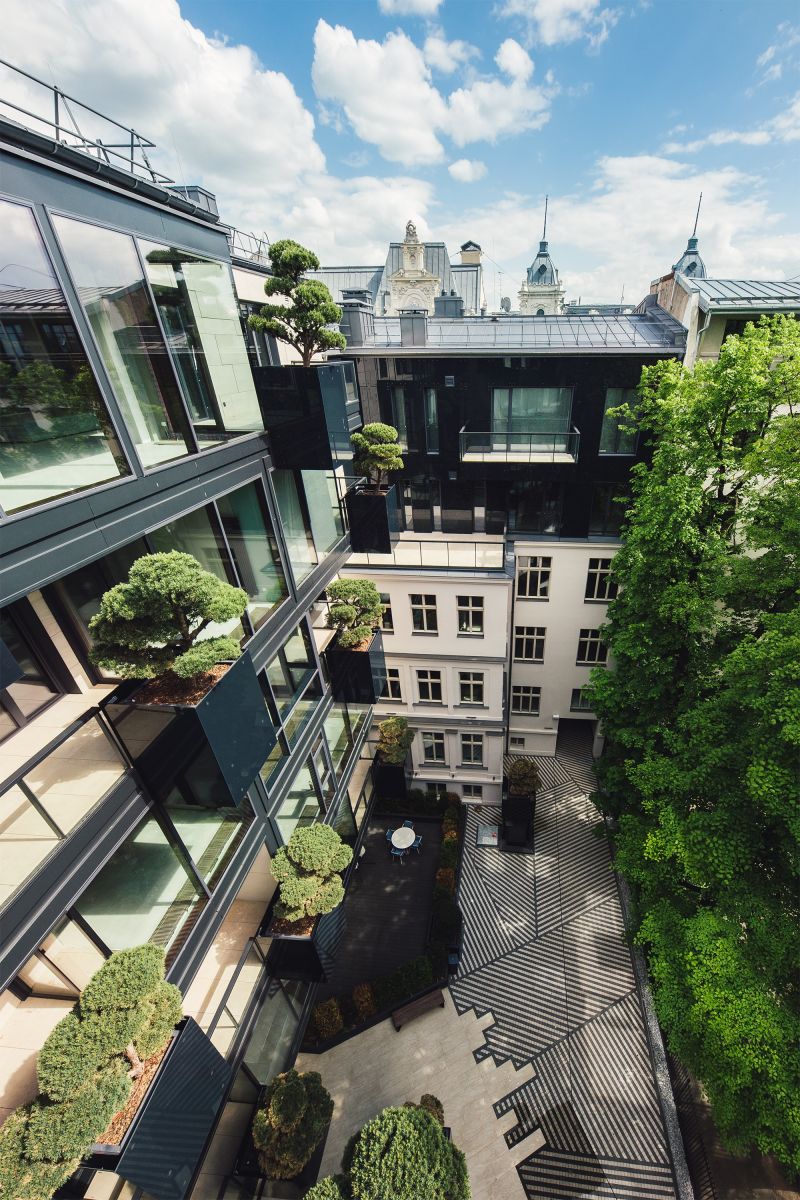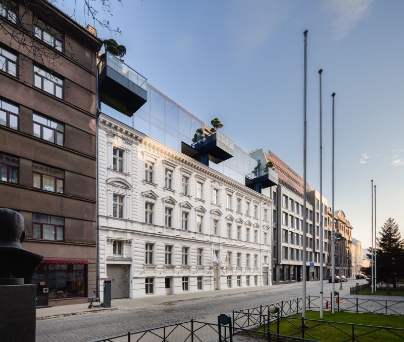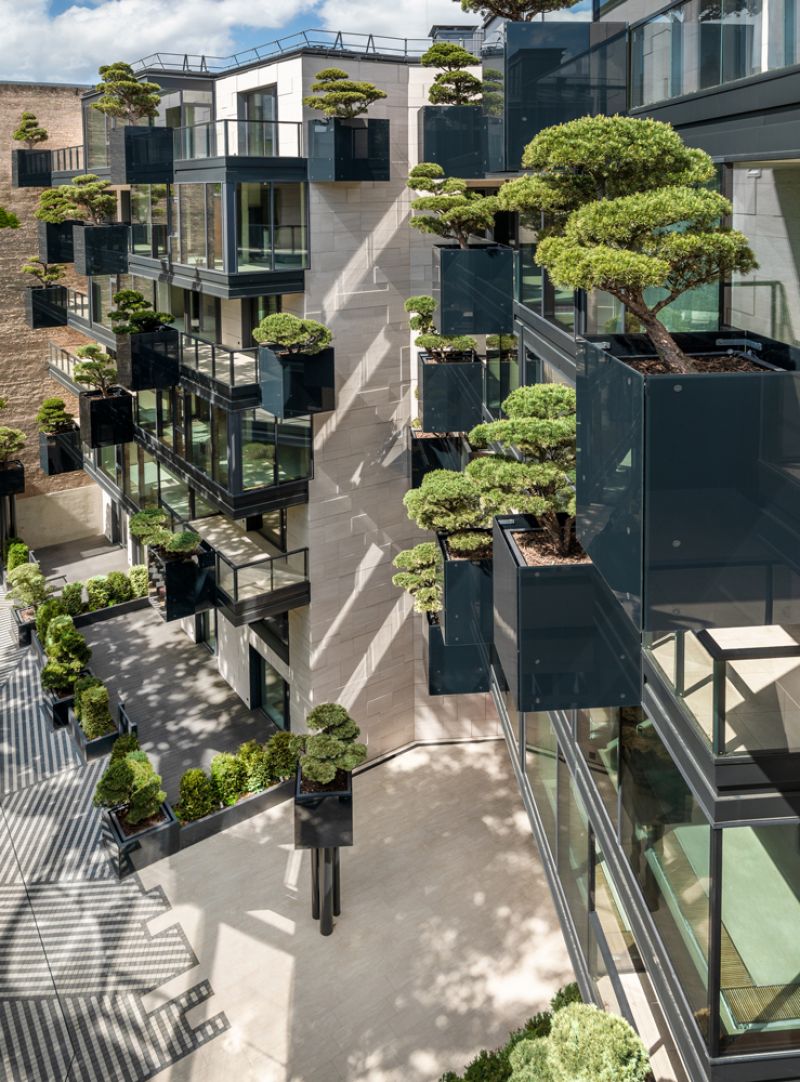 It is the trinity of a green view of the world and respect for the history of the city and modern architecture. The careful restoration of the historic façade, installation of trees as part of the building’s
