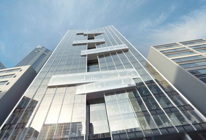 One Bedford Place is a brand-new iconic commercial development amidst the formerly industrial neighborhood that differentiates from the conventional monolithic appearance of commercial high-rise buildings in Hong Kong. The architectural design takes the form of a “splitted” twin-towers with protruding “bridges” slanted at varying angles to create a sense of movement and play. Cladded with full height curtain wall and decorative fins, this dynamic composition, together with its slender, prismatic volumes and expressive exterior language, creates a distinctive architectural identity.