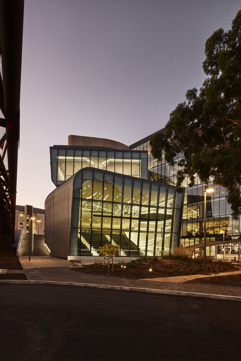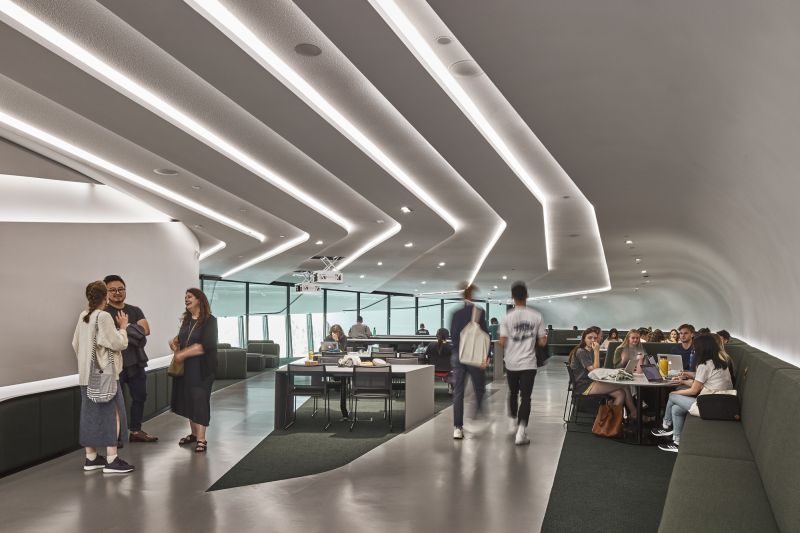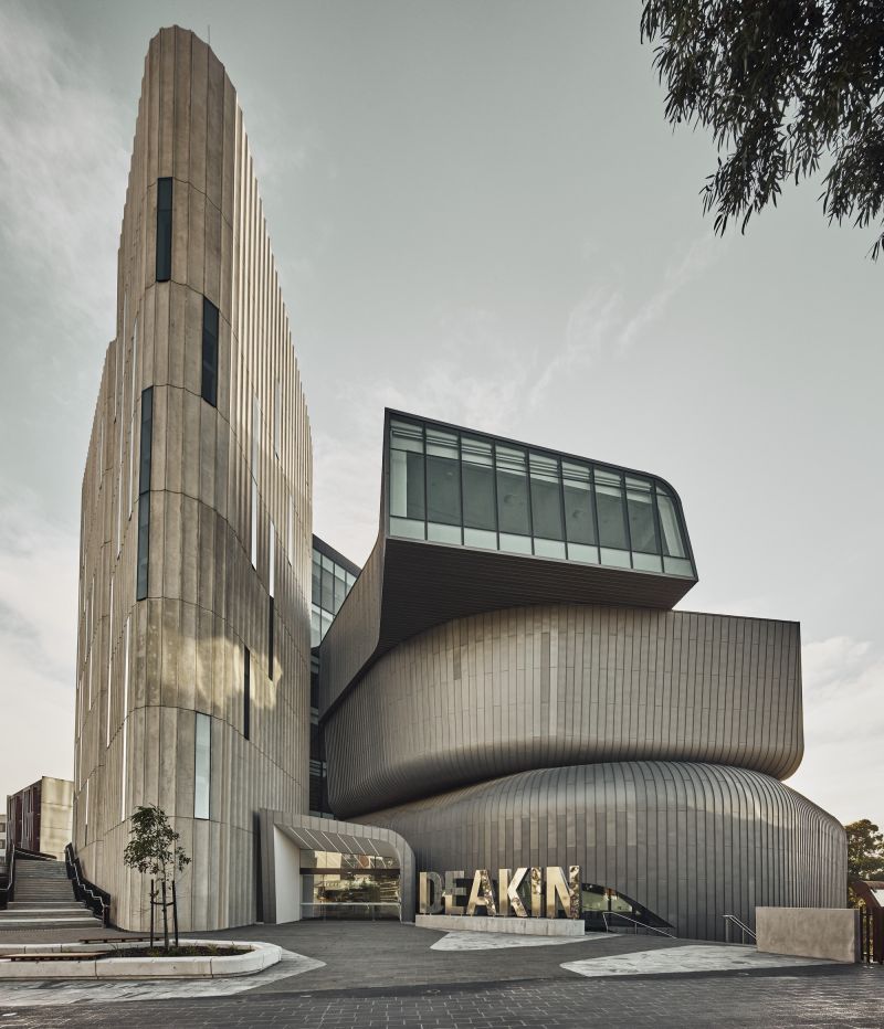 Woods Bagot’s Deakin Law School Building introduces a sculptural and coiled learning environment to reconcile the university’s splintered Burwood Campus in Melbourne. Creating a beacon and gateway to the Elgar Road Precinct the building provides a point of orientation, wayfinding, and enhanced campus experience. The Deakin Law School Building’s arresting geometry arose from the innovative blend of learning spaces held within. Each space addresses a different emerging methodology of teaching, doing away with the traditional lecture theatre in the process.
