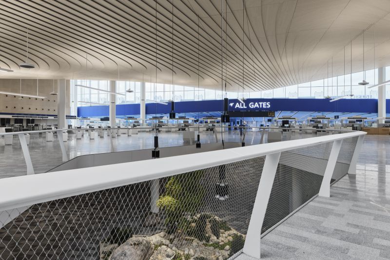 The newly opened expansion of Helsinki Airport brings adventure and romance back to air travel. It also improves the functionality of the airport, built in multiplephases starting from the 50s. In 2016, the airport operator Finavia launched a design competition for theexpansion and modification of terminal 2.The competition task included relocating the departures and arrivals halls to a new building so that the existing departures hall of terminal 2 could be turned into gate areas.