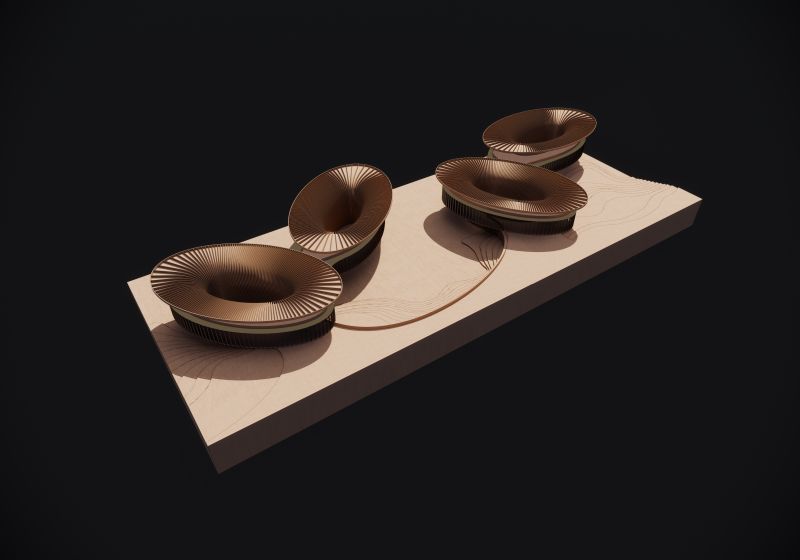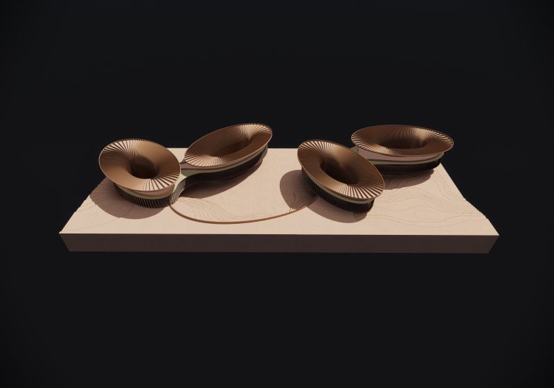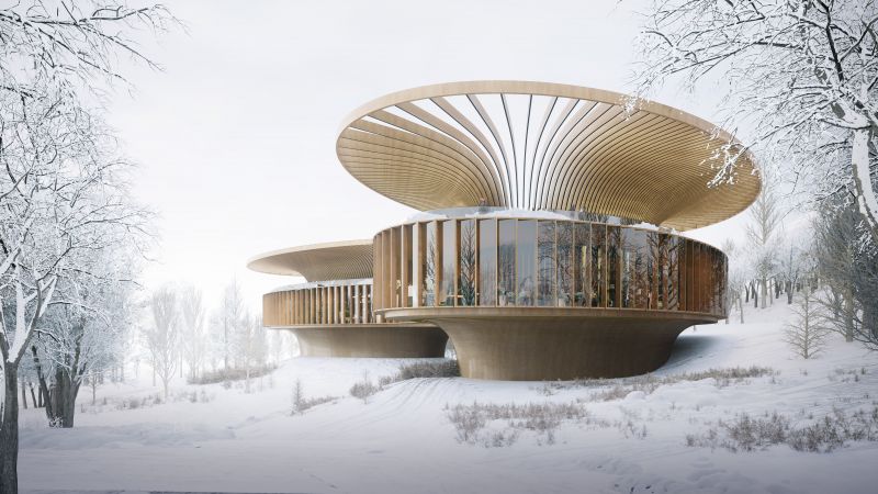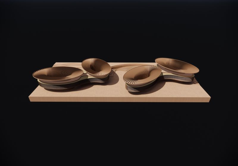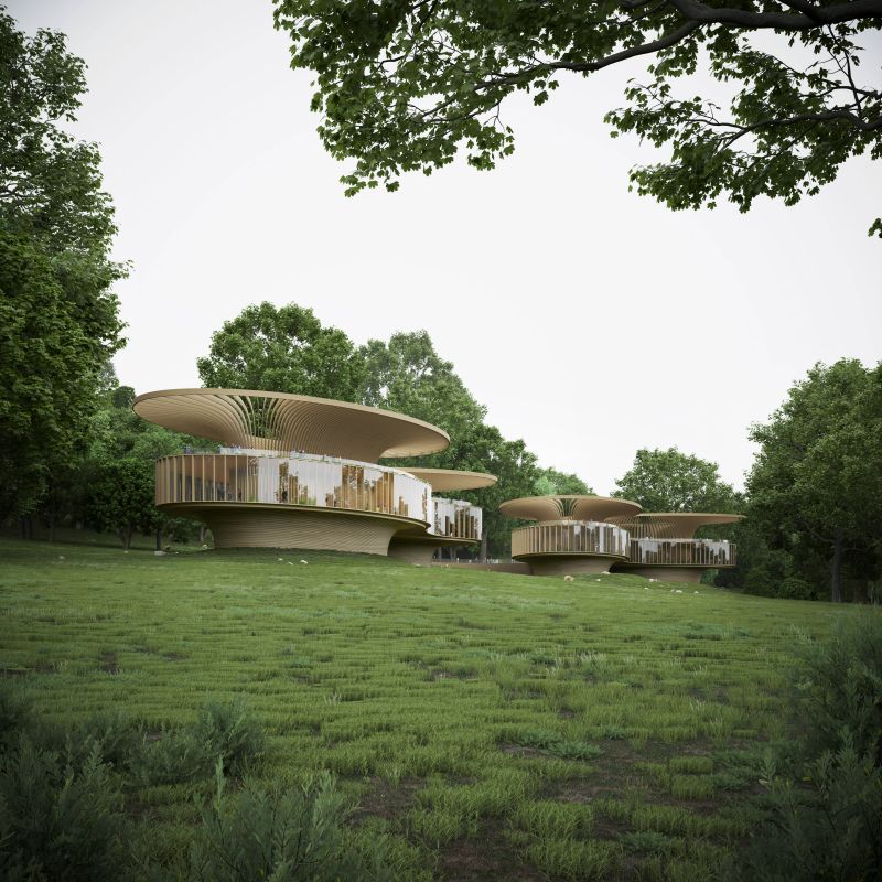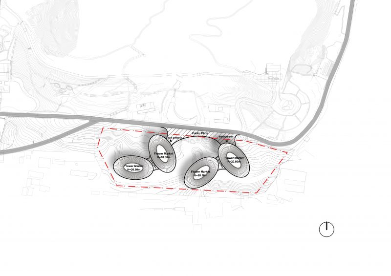 The timber-and-aluminum canopies growing from the slope of the mountain, integrated seamlessly into the natural landscape. The roof terraces has panoramic views to the surrounding, which are used for flower trading, community gathering and culture exchange.