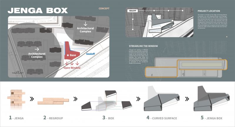 This is a community commercial building.The site of the project is tight and especially narrow in the north. The planning of the space conforms to the changes of the site, arranges and combines every functional spaces.The facade along the street is designed to showcase the interior functions completely in the commercial facade of the building,just like theme windows, which not only fulfill the basic commercial functions required by the brand but also create an innovative theme experience to attract visits from the social media.