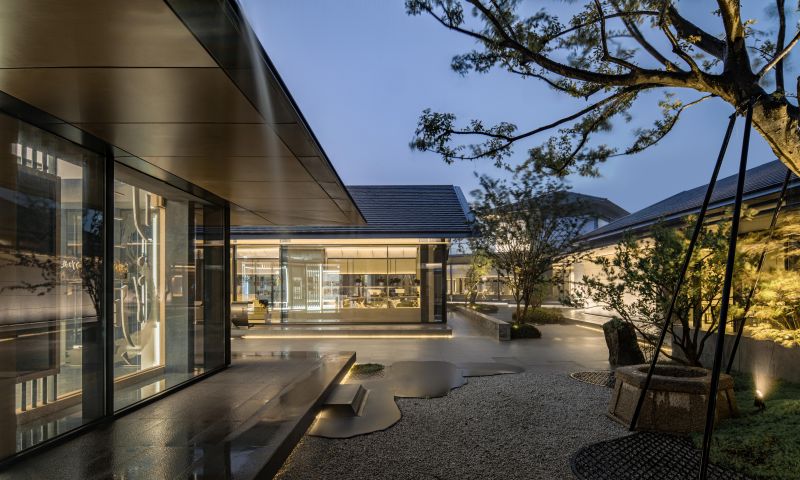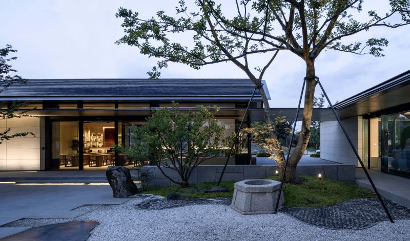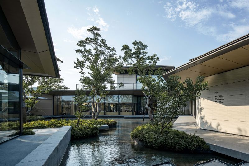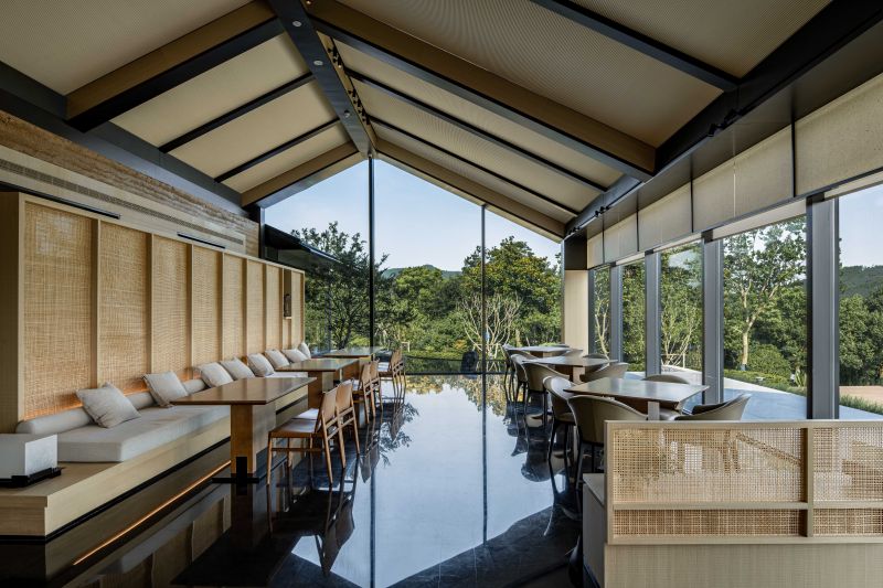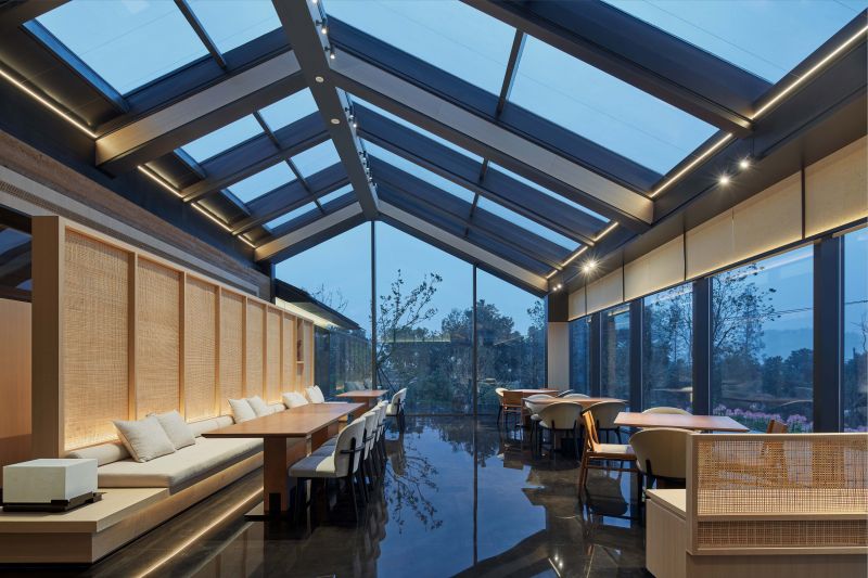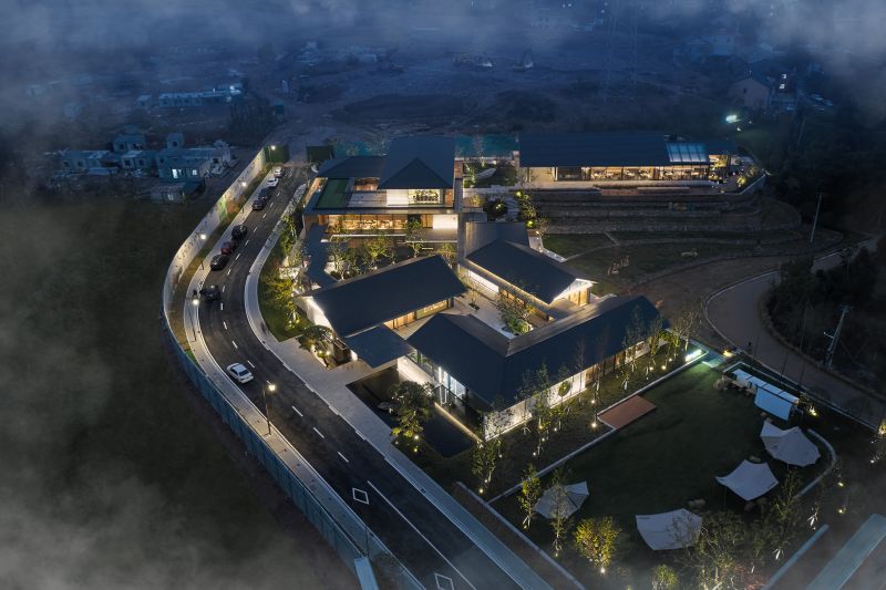 Living Aesthetics Pavilions Ningbo Taolichunfeng Town is located at the junction of farmland and mountains. We form a group of architectural design strategies with small individual buildings to form different architectural interfaces and respond to different site boundaries. We take a specific wandering route as the pedestrian path, and three gardens with different qualities are placed on it. The Paddy Field Restaurant in the best position for viewing and being watched. We adopted a straightforward design strategy to deal with it, and presented it in the simplest architectural language.