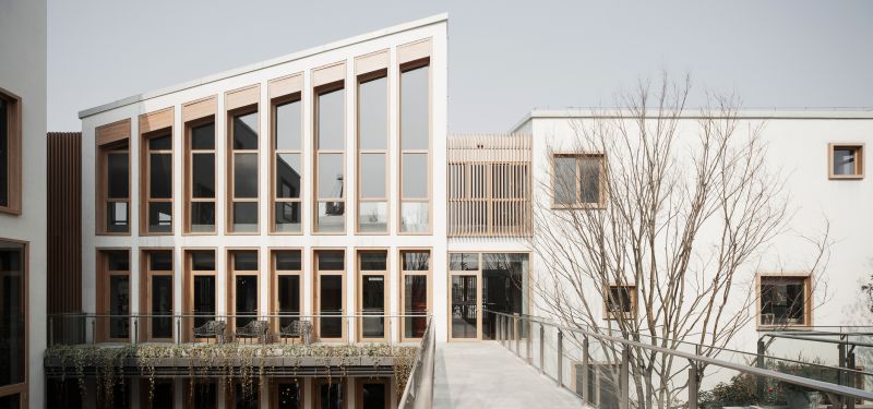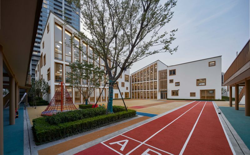 Located in the intersection of Fengqi Road and Tanggongju Road in Jianggan District, Hangzhou City As a kindergarten of Class 9, The architect summarized the kindergarten into several block combinations similar to toy blocks, combined with random window holes on the facade, so that the kindergarten can bring more fun for children to explore and experience, forming a very unique kindergarten architectural style. Before the kindergarten is officially put into use, it has also achieved very good social and economic benefits as a living experience support for residential projects.