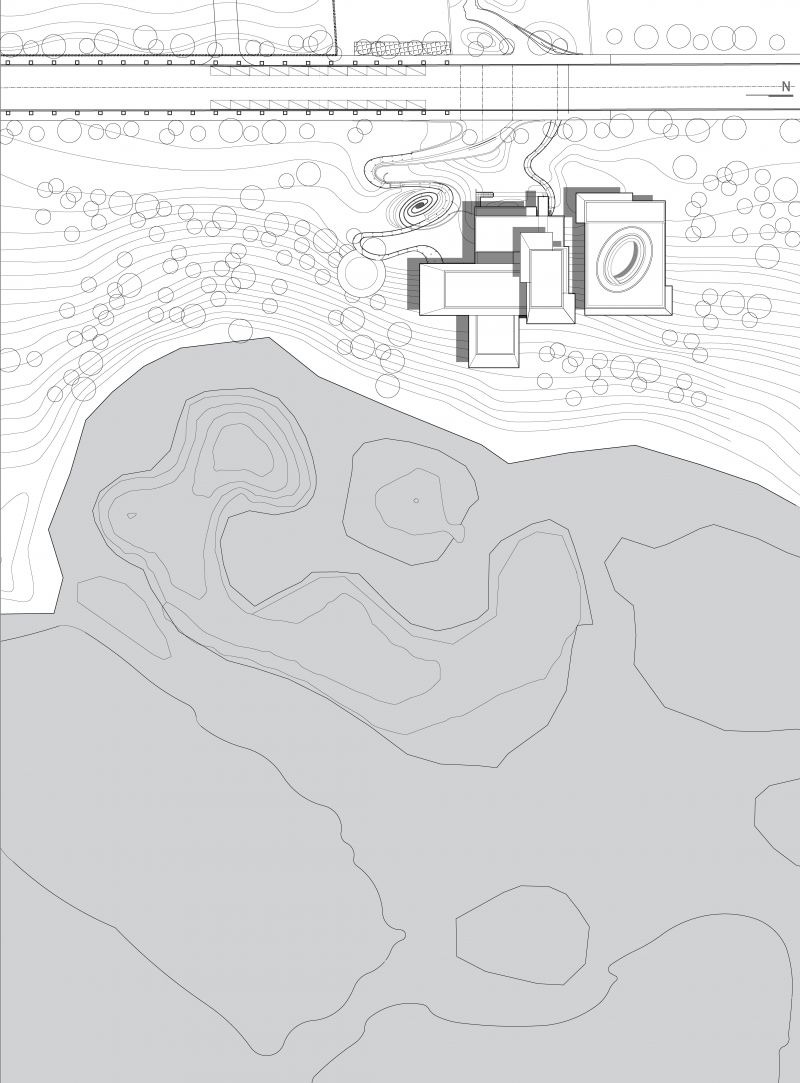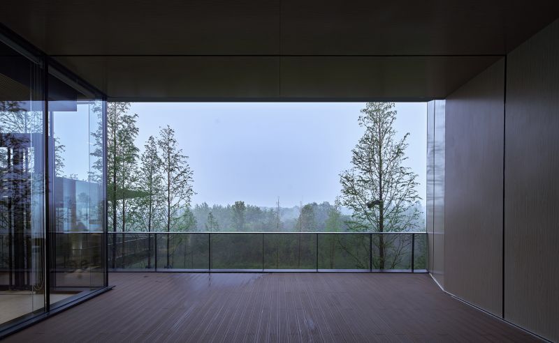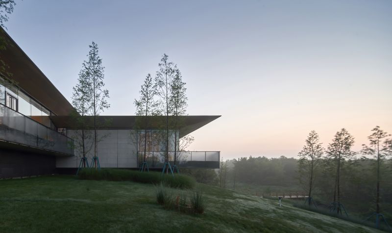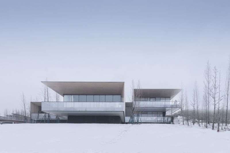 Exhibition Hall of Xingyang Suohe Country Park locate in an open and natural site. Its east side faces the expansive Suohe Country Park Wetland, This is also a site to isolate the city. One the west side of the site, there is a piece of construction land and a disorderly urban-rural junction. Our building is a natural barrier to isolate the disordered environment from the poetic green space in the countryside. The task of architecture is to create a place where people can enter, rest, view and look far.