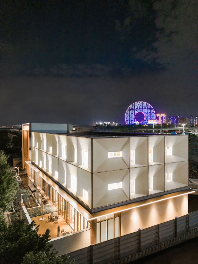 The project adopts simple geometric volumes. A cubic box, beveled surfaces and three basic shapes are arranged and combined. A series of box-shaped blocks are adopted for the facade to create an orthogonal geometric order. The building is rendered into a public sculpture in the city.