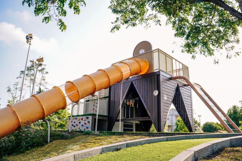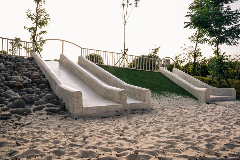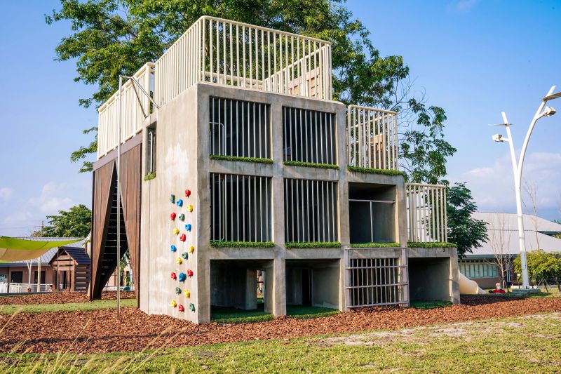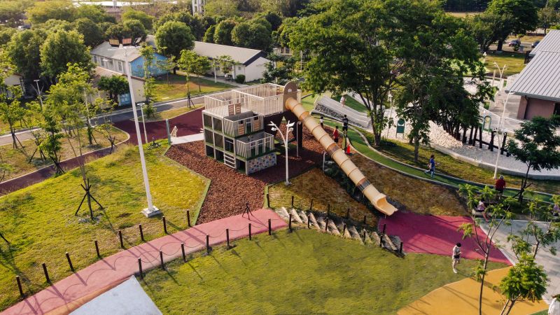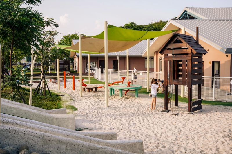 The site was originally a military base, so the design team has made significant changes to the outlook. To meet the needs of all people, the space is designed to be barrier-free for children, youth, the elderly, and the physically challenged, both inside and outside. In addition, there is a plaza, adult pavilion, children pavilion, and indoor exhibition spaces. Finally, the design team reverses the impression of the military base and the concept of the social welfare center to create a new playground for people of all ages.