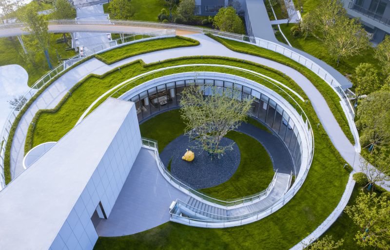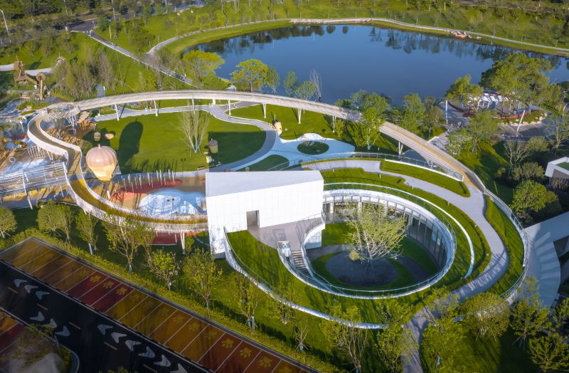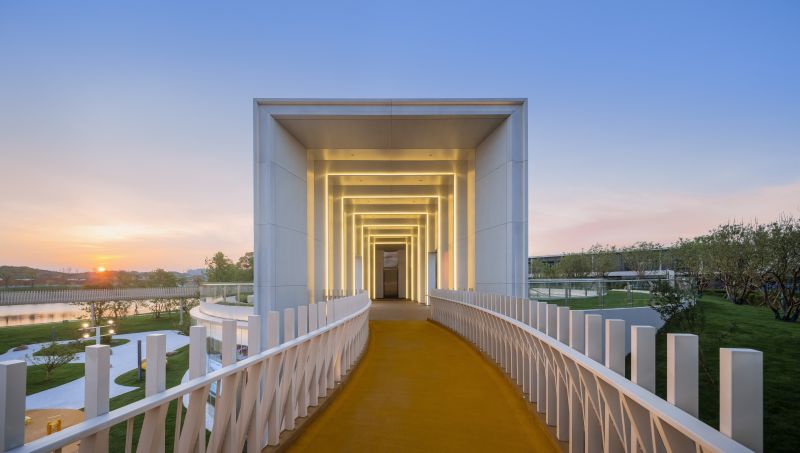 Jinmao Changsha International City lies in Changsha Dongshan Bay International New Town. The architects focused on shaping the overall environment, planning a park around the Muzi Pond, then building a slow life-sharing community next to the park. The Life Aesthetics Hall of this project is a group of community public buildings in the park.
