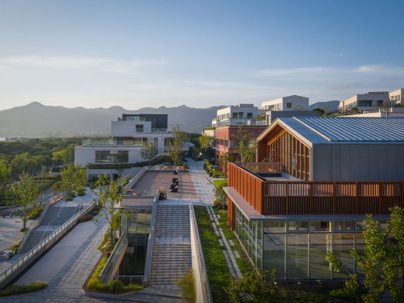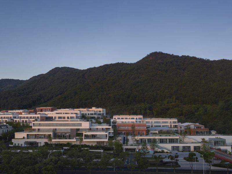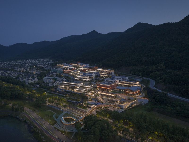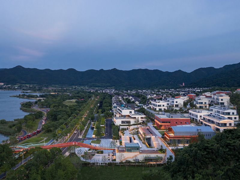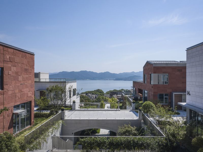 The project site is located in the south bank of Dongqian Lake, south of South Huanhu Road, east of Fuquan Mountain, and surrounded mostly by residential land. Based on the design philosophy of fully respecting the nature, architects tried to create a mountain village-style community with a picturesque lake view.
