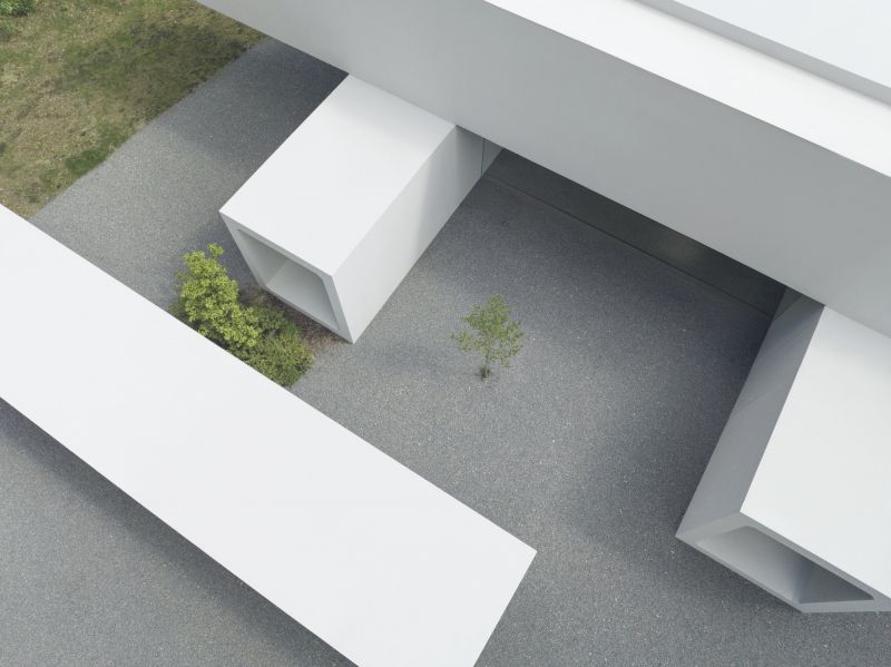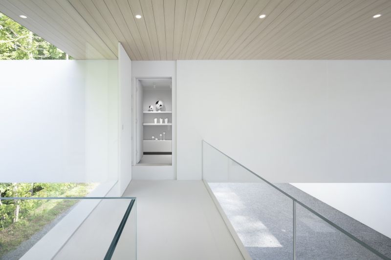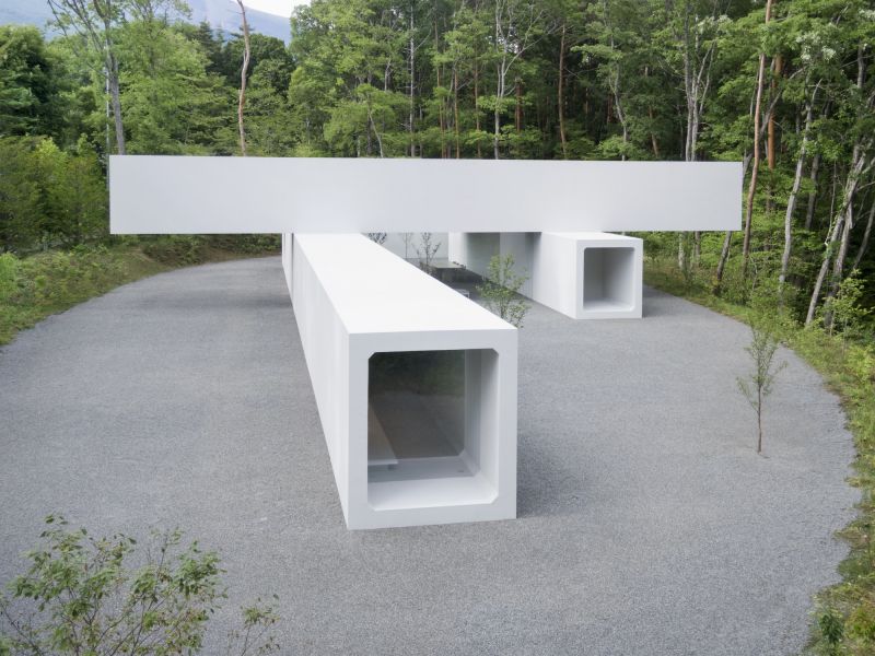 A storage facility for archiving furniture, products, and artwork in Miyota-machi, Nagano Prefecture, with a guesthouse attached. Located in a quiet and nature-rich environment where streams weave through a thick forest of red pine, the tunnel-like architecture took shape through a combination of precast and prestressed construction methods. For precast construction, common parts are molded in a factory and assembled on site. An example of its applications in infrastructure projects is the box culvert (box-shaped concrete structures), used to store waterways, pathways, and power lines.