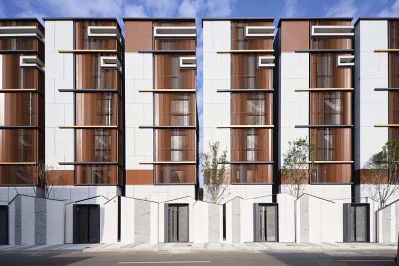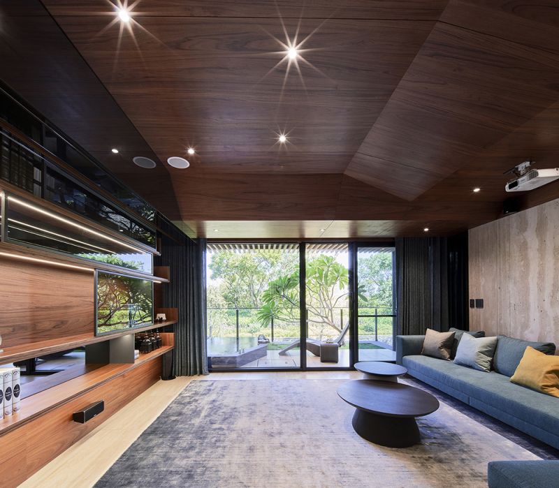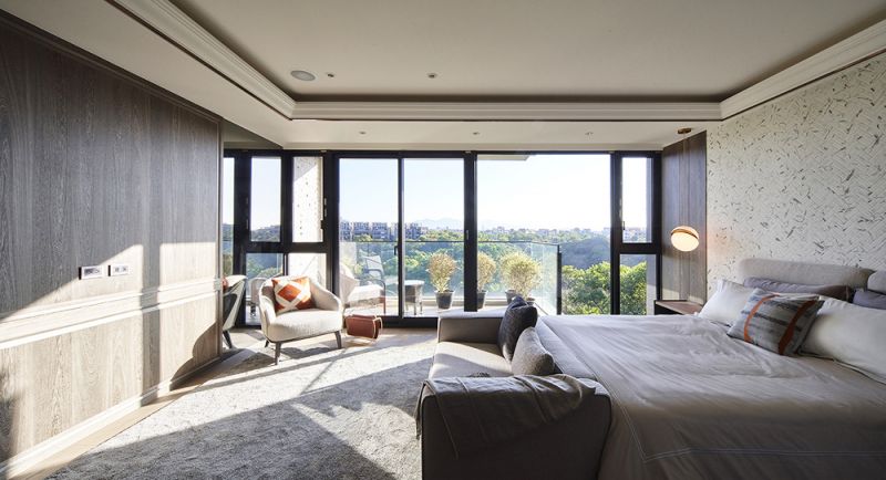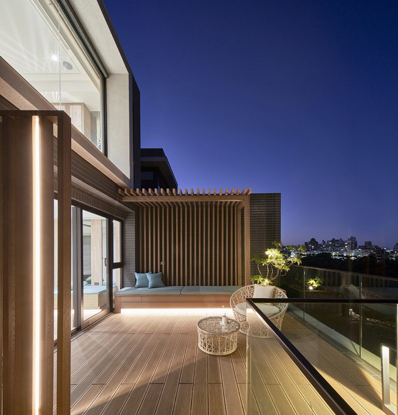 This project is located in Linkou District, Taiwan, an area surrounded by woods. The enclosure wall of the villa features a design with mountain-shaped silhouette effect, inspired by the valley topography around, and represents as the first step to embrace the nature. As for the materials, the wall consists of terrazzo and stone, showing the beauty of rusticity. During the night time, under illumination, the building looks like sky lantern - a symbol of peace and hope.Besides, this project also conveys an exquisite concept of diversified leisure life.