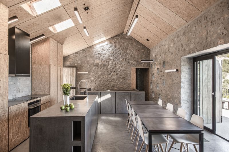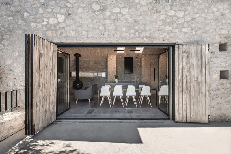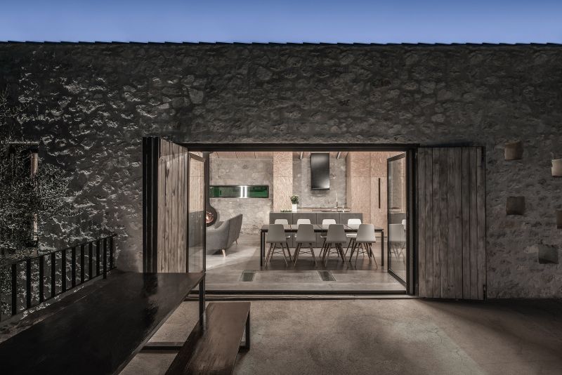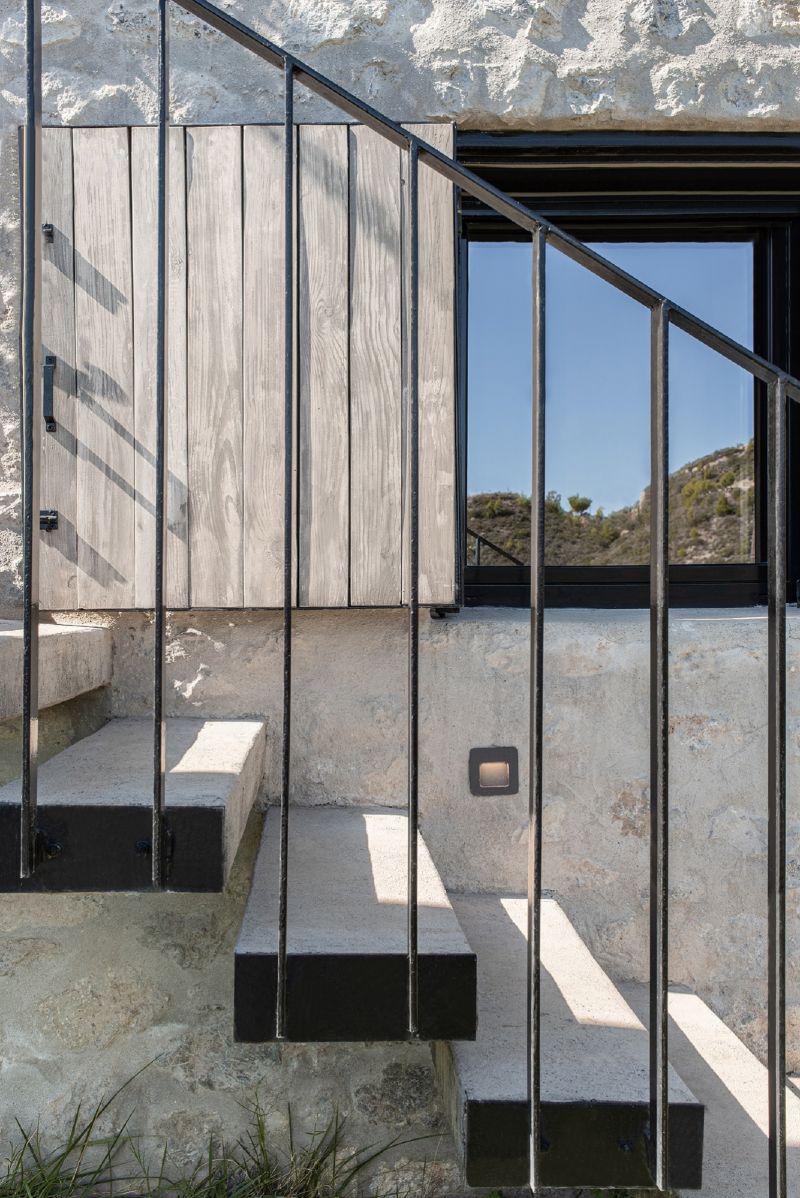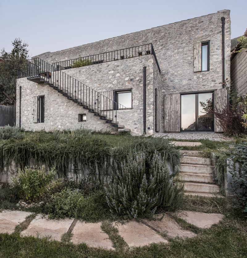 A plot situated in a village of Kalamia, with a view to the Gulf of Corinth, is a setting for a retreat. The morphology of the place led to the decision of creating a house with humble appearance from the street side, while developing in a two-level construction from the garden. Natural reclaimed materials applied are inspired by industrial feel of the rural Peloponnese stone stables. Built according to sustainable standards with restricted means, the custom-made 141m2 dwelling has been playing major role in the 2020 pandemic situation, providing its inhabitants safety and comfort.