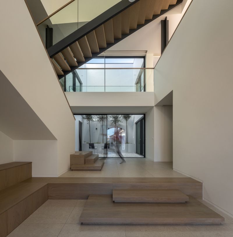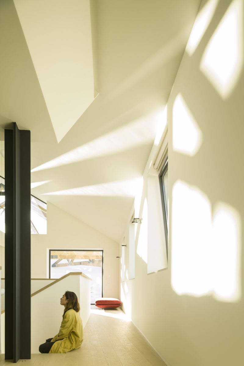 This corner house is the result of renovating an old barn, with the original high ceilings allowed the building to be divided into three quite open floors creating empty spaces and free vertical communication.