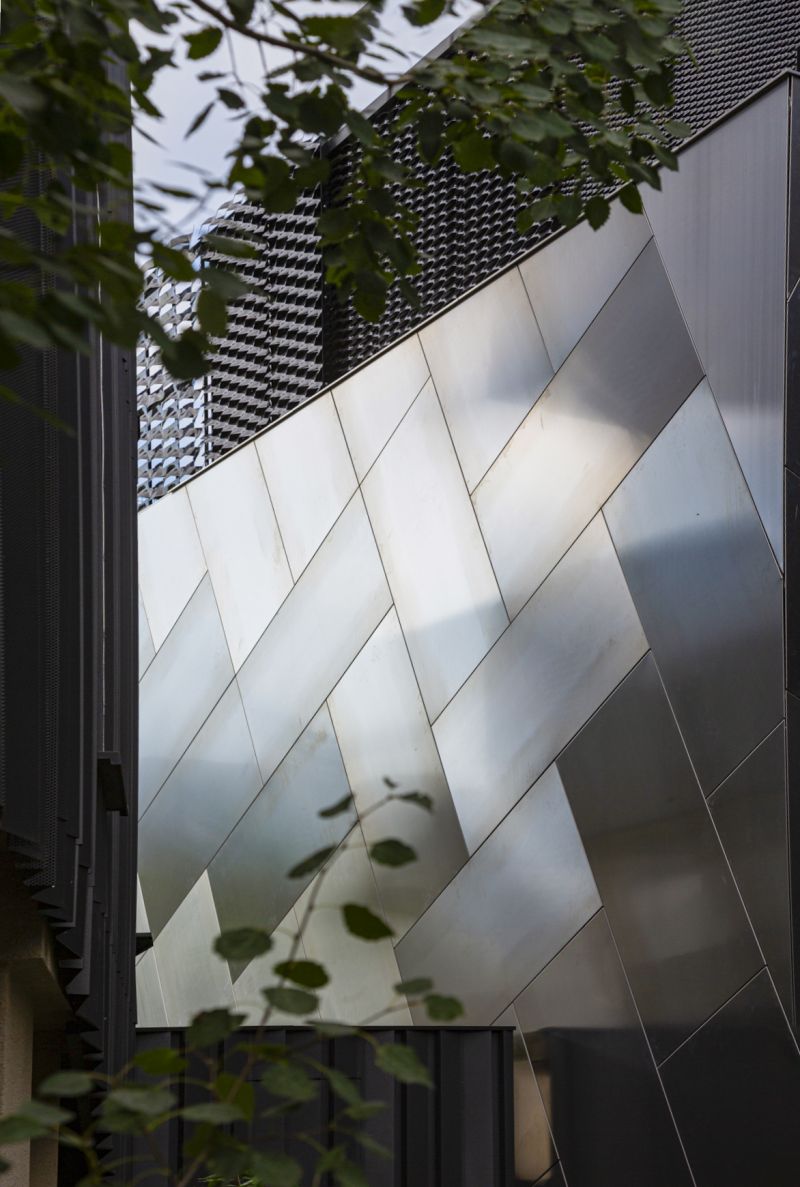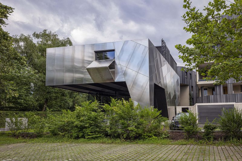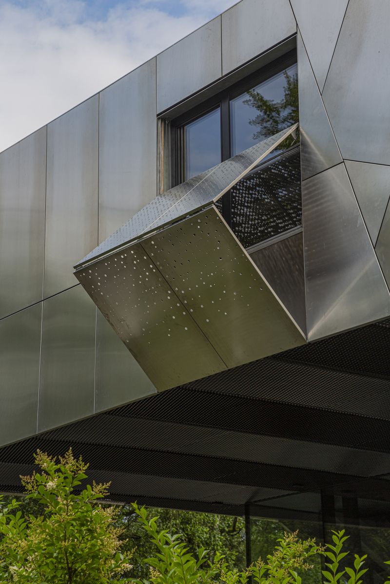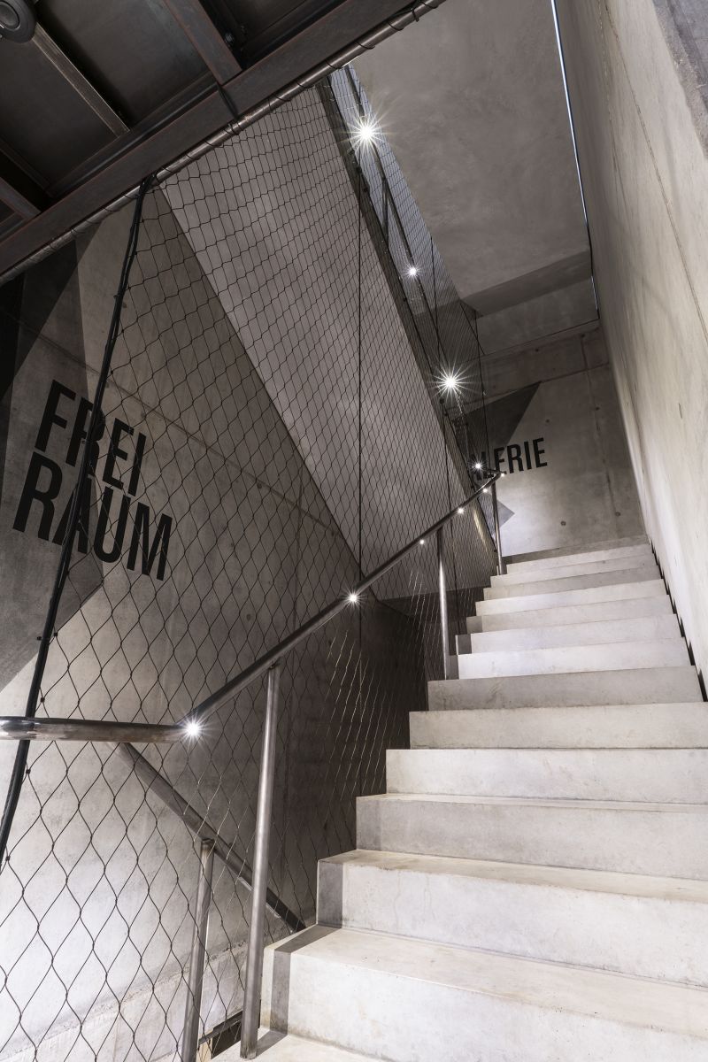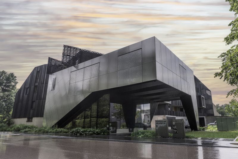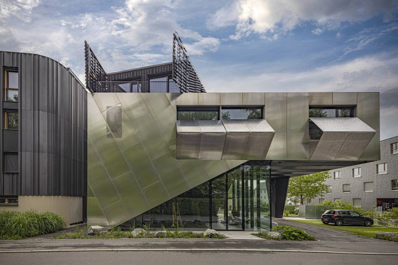 The building was created as part of an overall development of a property in Dornbirn, Austria. It is used as an office building. A so-called “free space” was a long-cherished goal, to create a space of experimental design but also public conversation. The structure is situated in an environment of business and living space, behaves standing and flying, it is closed and open, smooth, and porous. These contrasts complement each other to form a space of possibilities, probabilities, visions and remind us of what architecture can be.