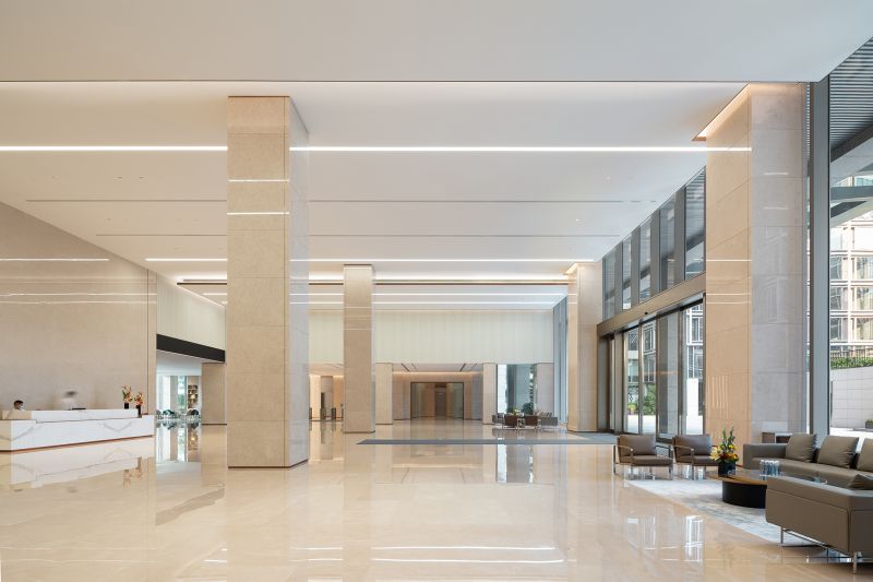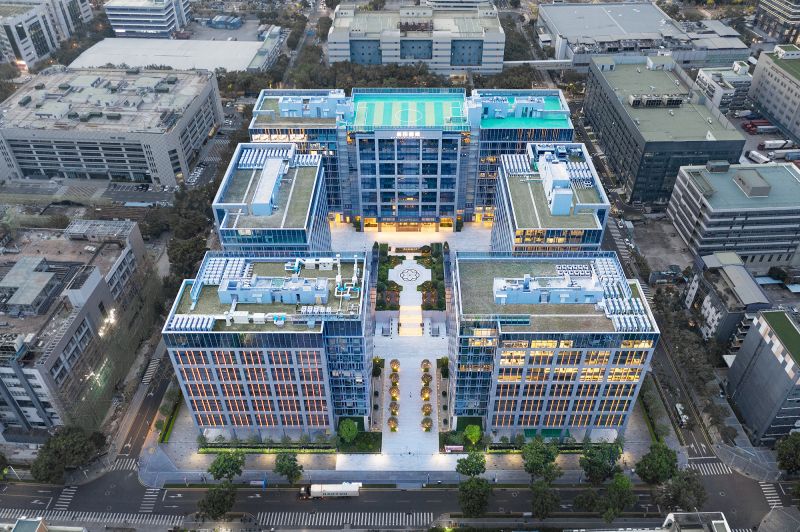 The project creatively combines the column free large space with the central garden to form a soil covered platform garden with local ground prominence, which can not only meet the needs of basic functions, but also not affect the office vision, but also obtain the central vitality space. The sunken squares on both sides turn the underground floor into a sunshine garage, and the platform garden on the top can hold open-air activities, such as exhibition arrangement, product release, etc.
