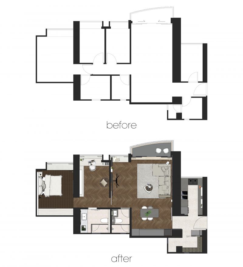 The idea of this project is modern minimalism meets practicality, the spaces were reorganized to be more spacious and proportional that fits property owner’s need and it perceives tranquility in downtown for spiritual need. The combination of lines, shapes and forms enhances the minimalist beauty and indirect lighting adds a sense of warmth while curved walls and mirrors and strip ceiling in the entryway lend a subtle interest and blended harmoniously in the minimalist setting. If spaciousness implies tranquility, details of design should imply accompaniment.