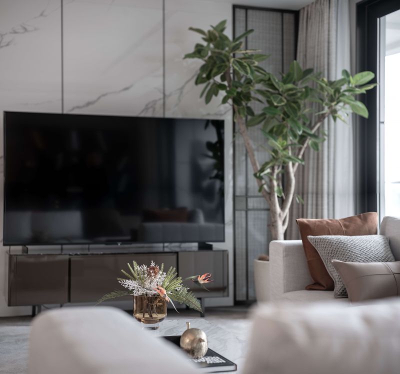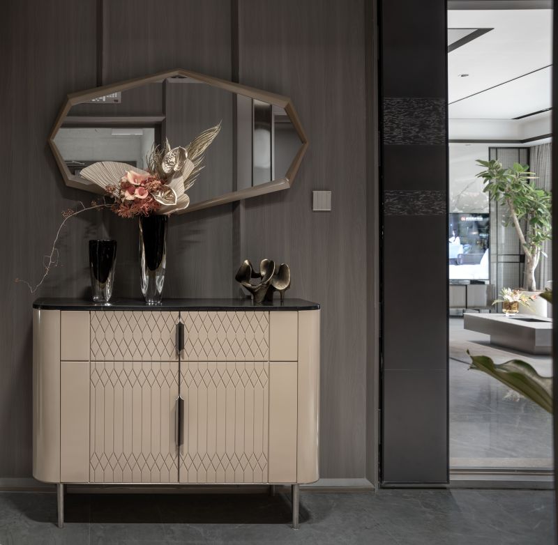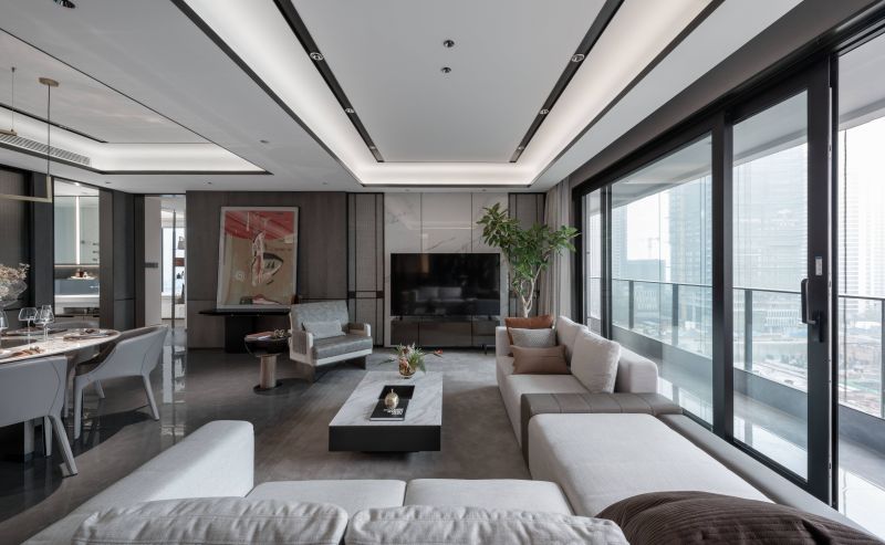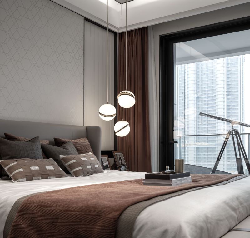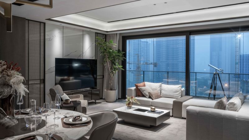 With a delicate understanding of light, the designer grasps the rhythm of light, shadow, and color in the space, turning it into an urban habitat with an "Italian romantic metropolitan spirit." The design uses a simple and introverted language, blending gray and warm brown, where refined modern aesthetic thinking arises quietly. The furniture and accessories are inspired by the combination of Milan's elegance and modernity, with curry brown, beige, and elegant black texture. There is no exaggerated decoration or color. Walking into the room, everything about life and time is calm and warm.